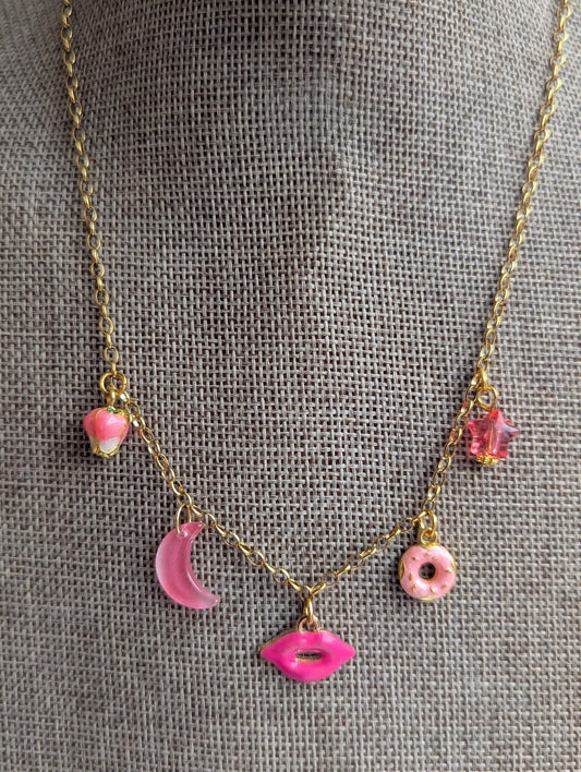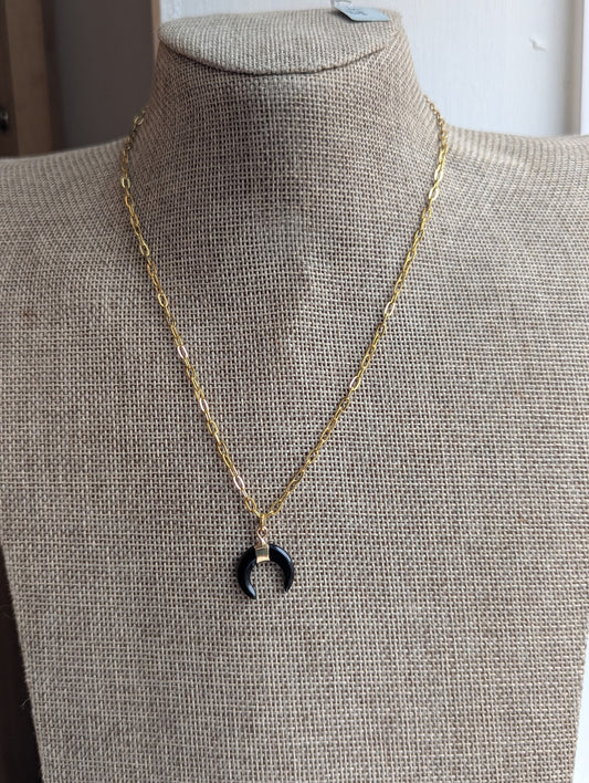 Jasper Half Moon Gold Paperclip Necklace (Various Styles Available)
