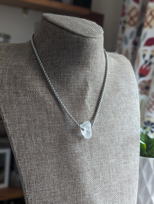 Colgante de cristal de cuarzo crudo en cadena de acero inoxidable