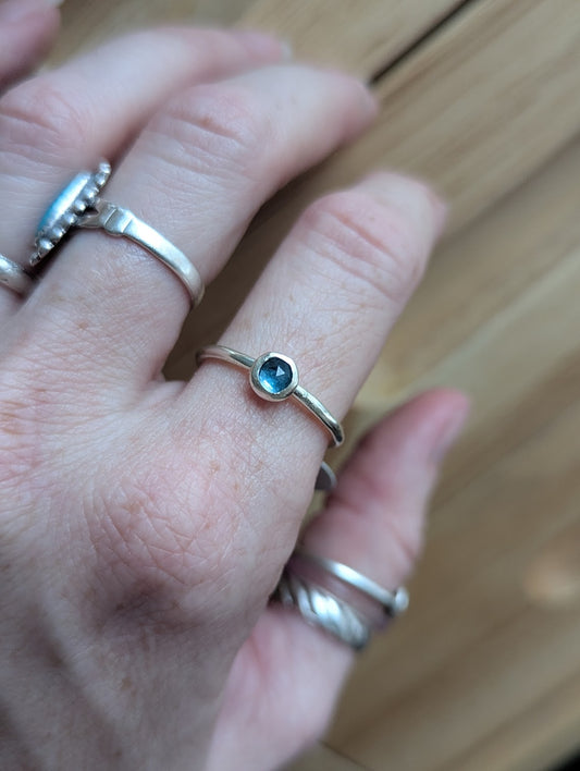 5mm Faceted Dark Aqua Kyanite Rings (Various Sizes Available)