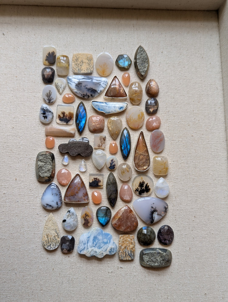 Ah, sí, la Colección Luna de Nieve... Una colección que ni siquiera planeaba hacer, pero me inspiró tanto la paleta de colores y las piedras que las piezas prácticamente se hicieron solas. ¡Ja! Ojalá fuera tan fácil. Pero, sinceramente, la energía era la adecuada y sabía que tenía que crear esta colección. ¡Espero que les guste!