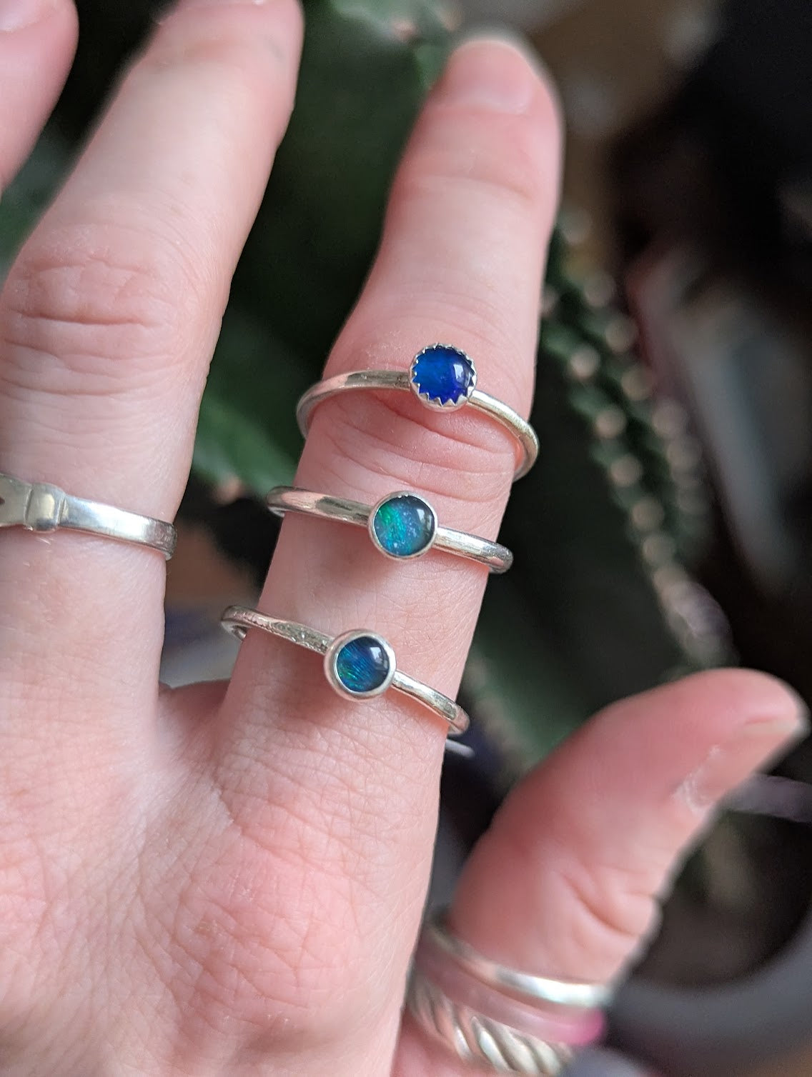 5mm Blue Green Opal Silver Stacker Ring - Size 7.5, 8 & 11