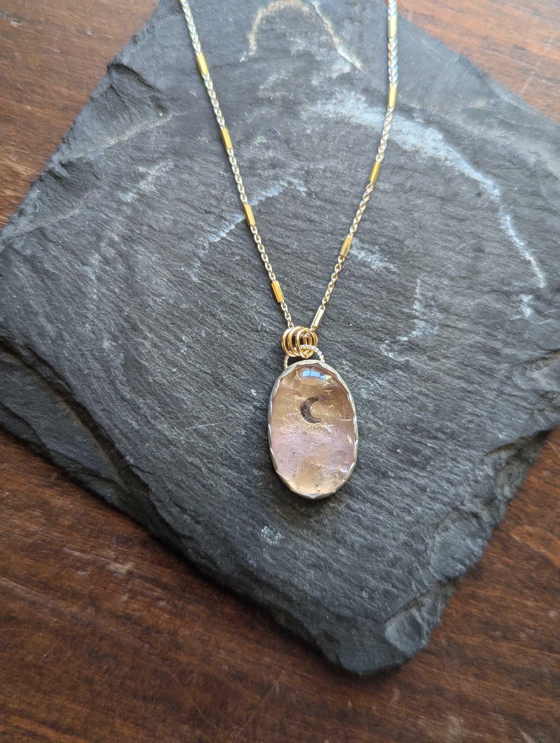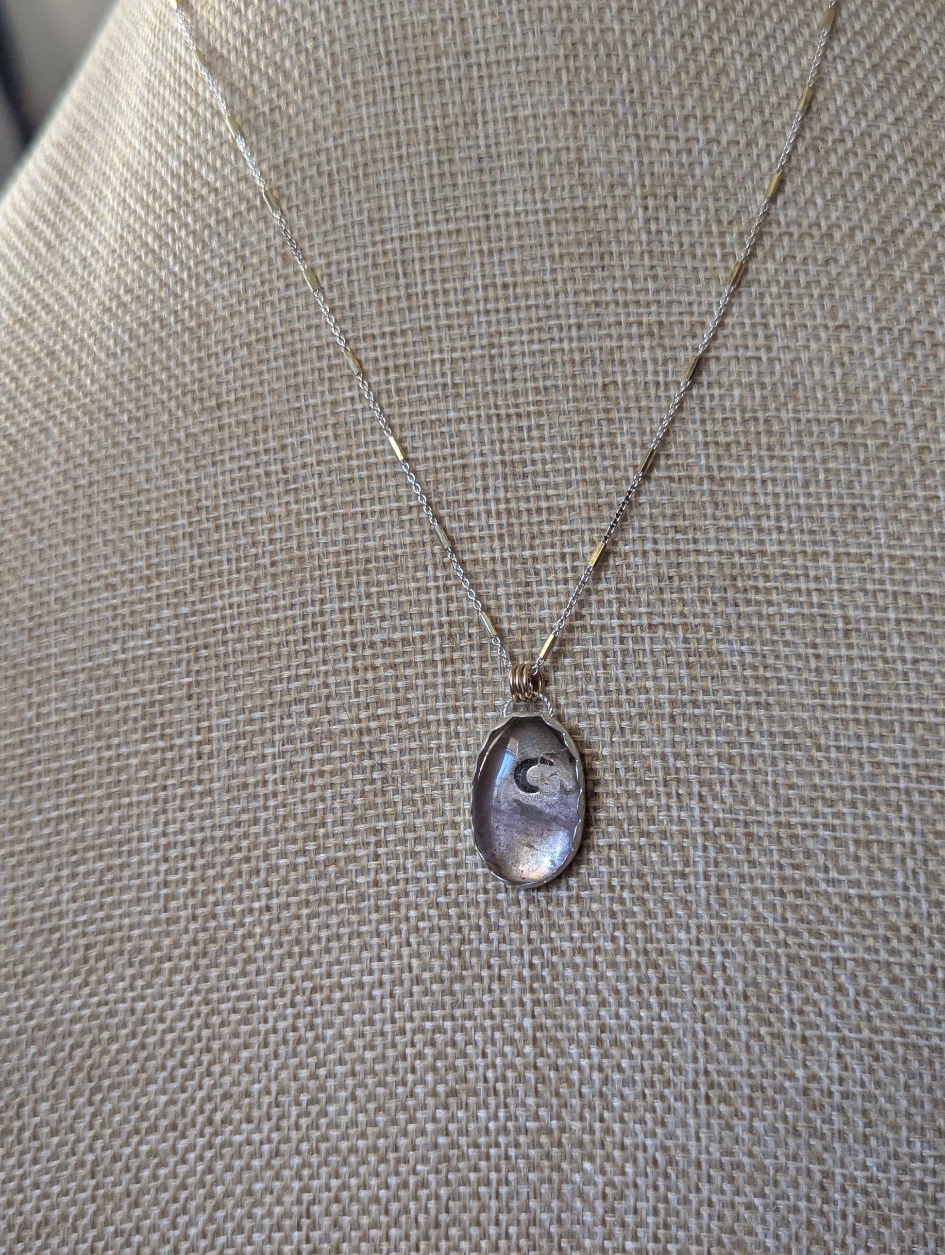 - Debido a su naturaleza transparente, he incluido una luna creciente estampada en la placa posterior a través de la cual se puede ver hacia el frente.