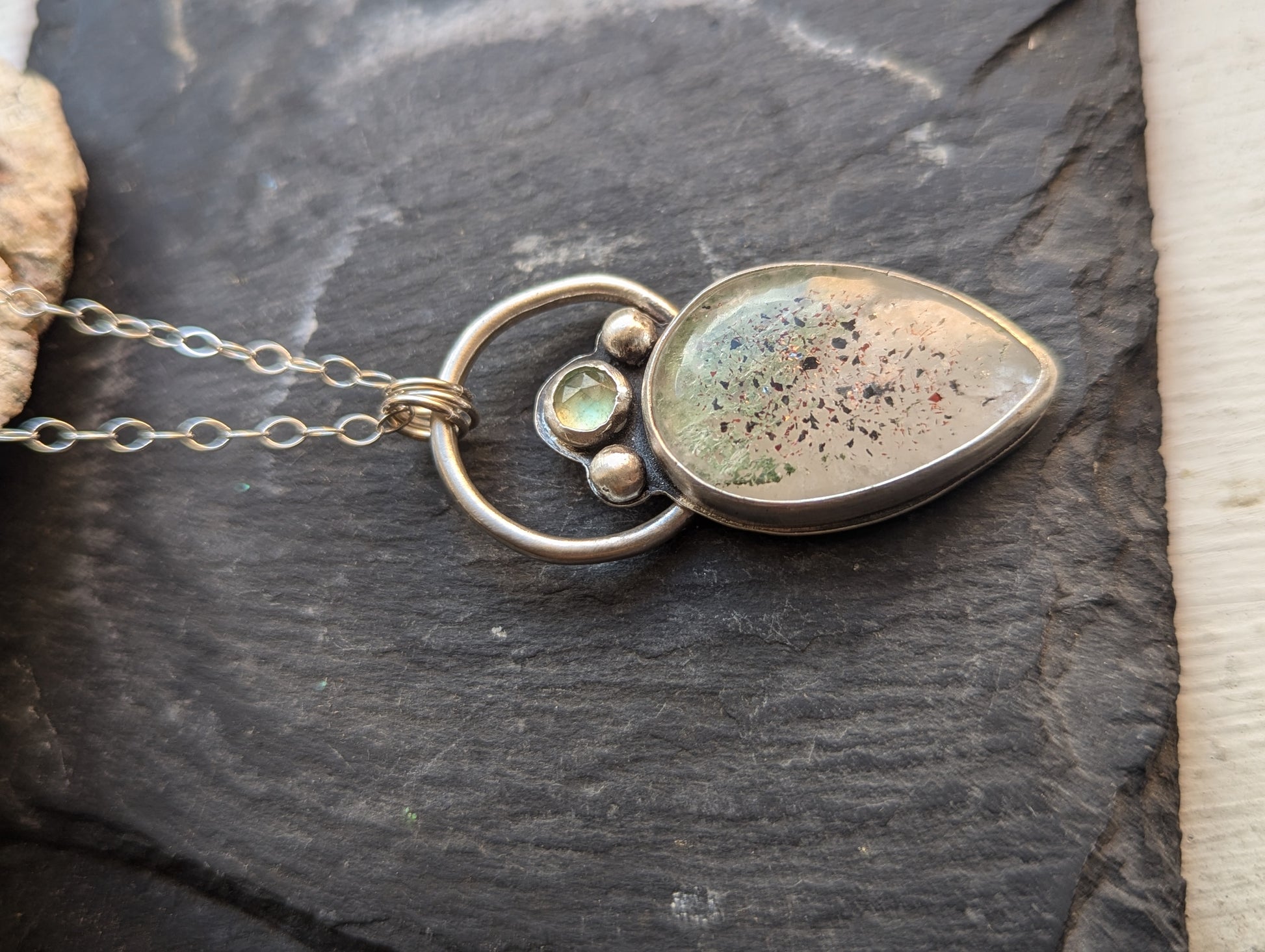 - Lágrima de lodolita y piedra preciosa de cianita verde facetada