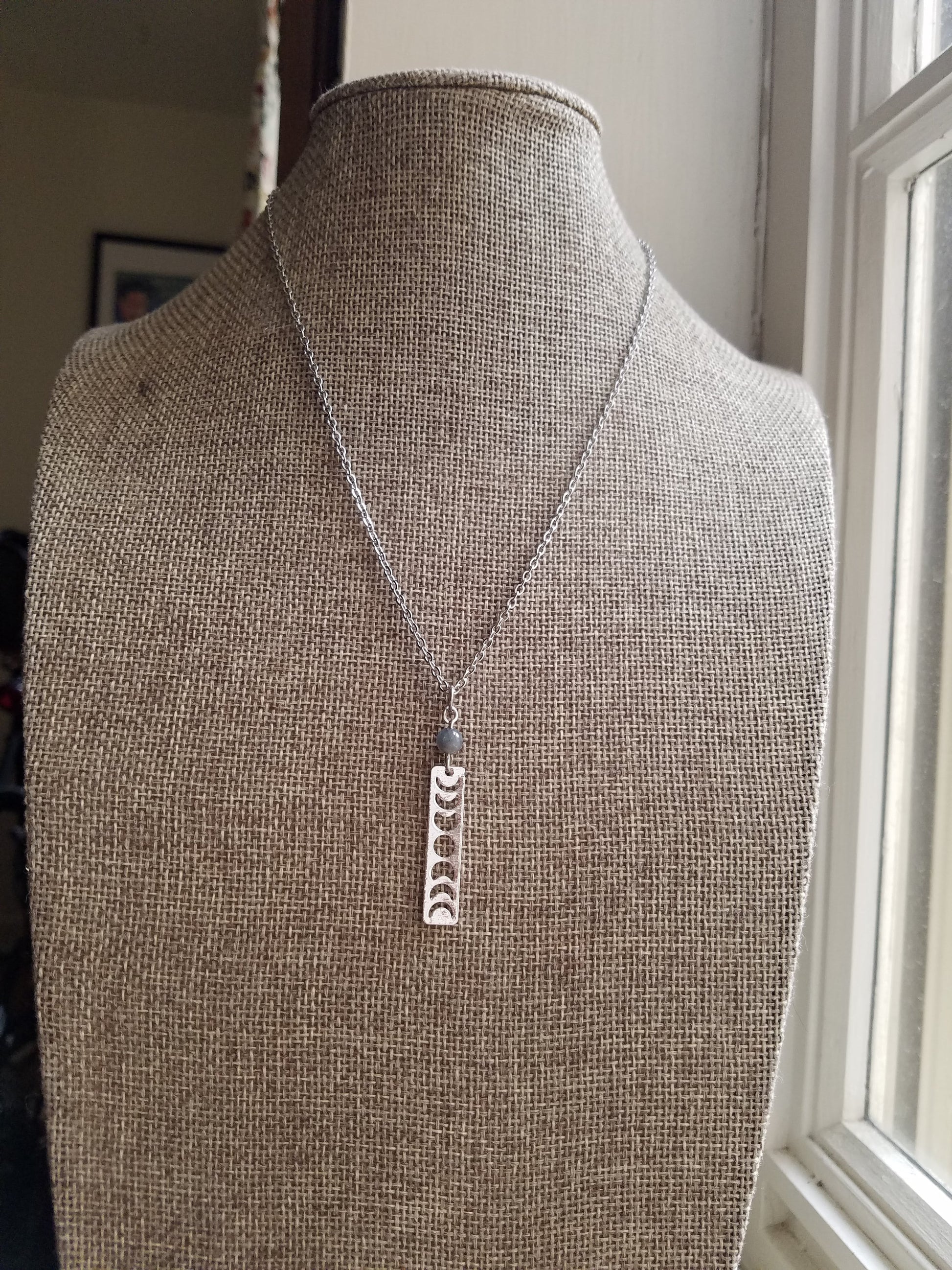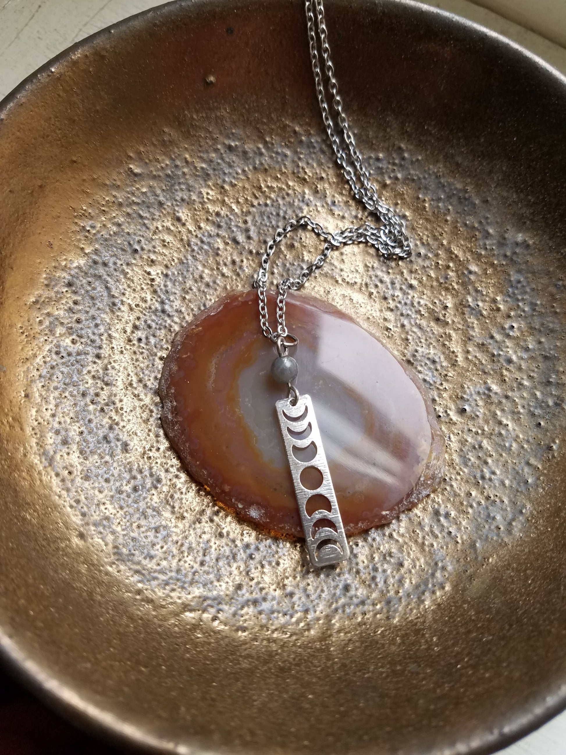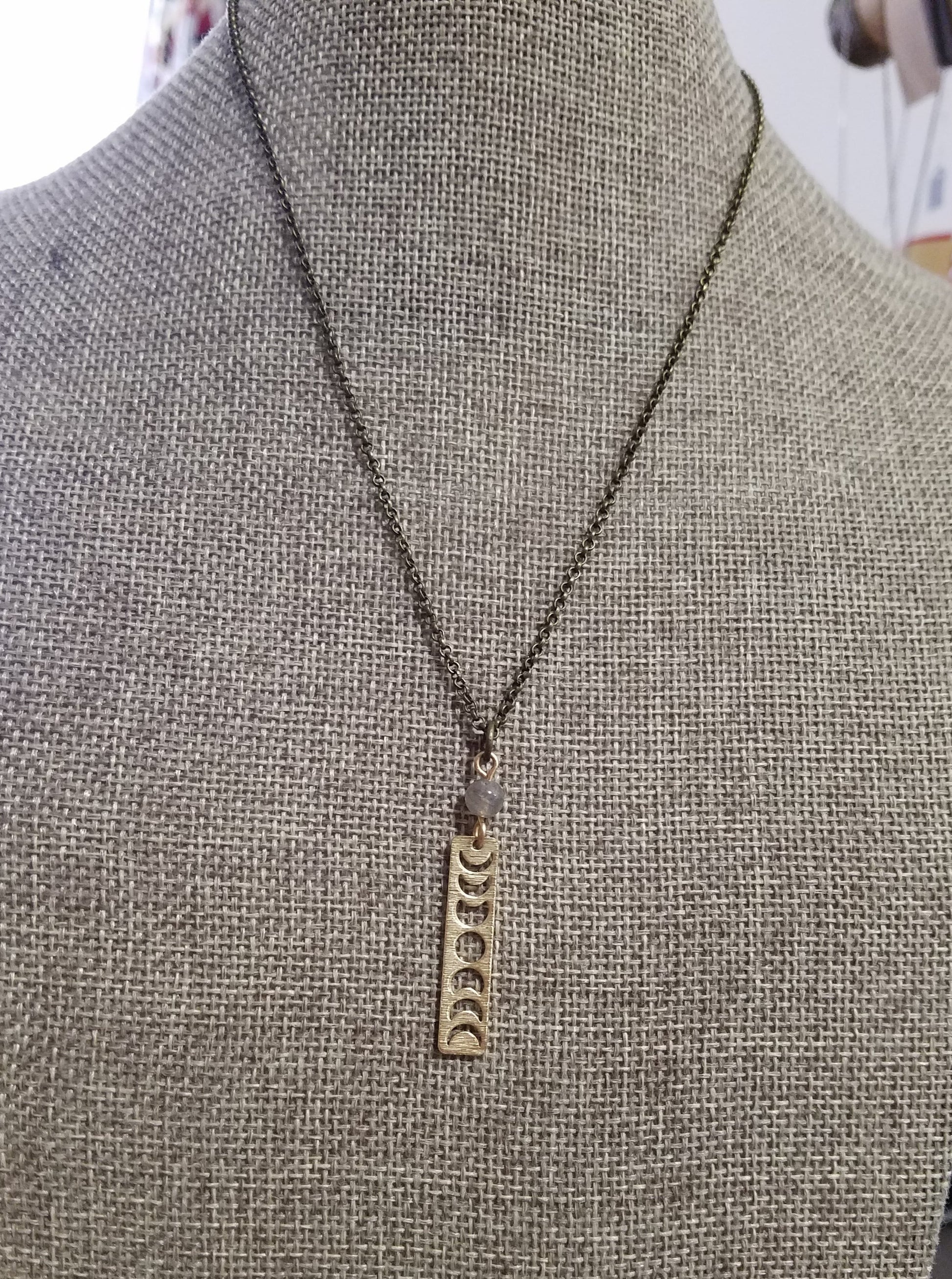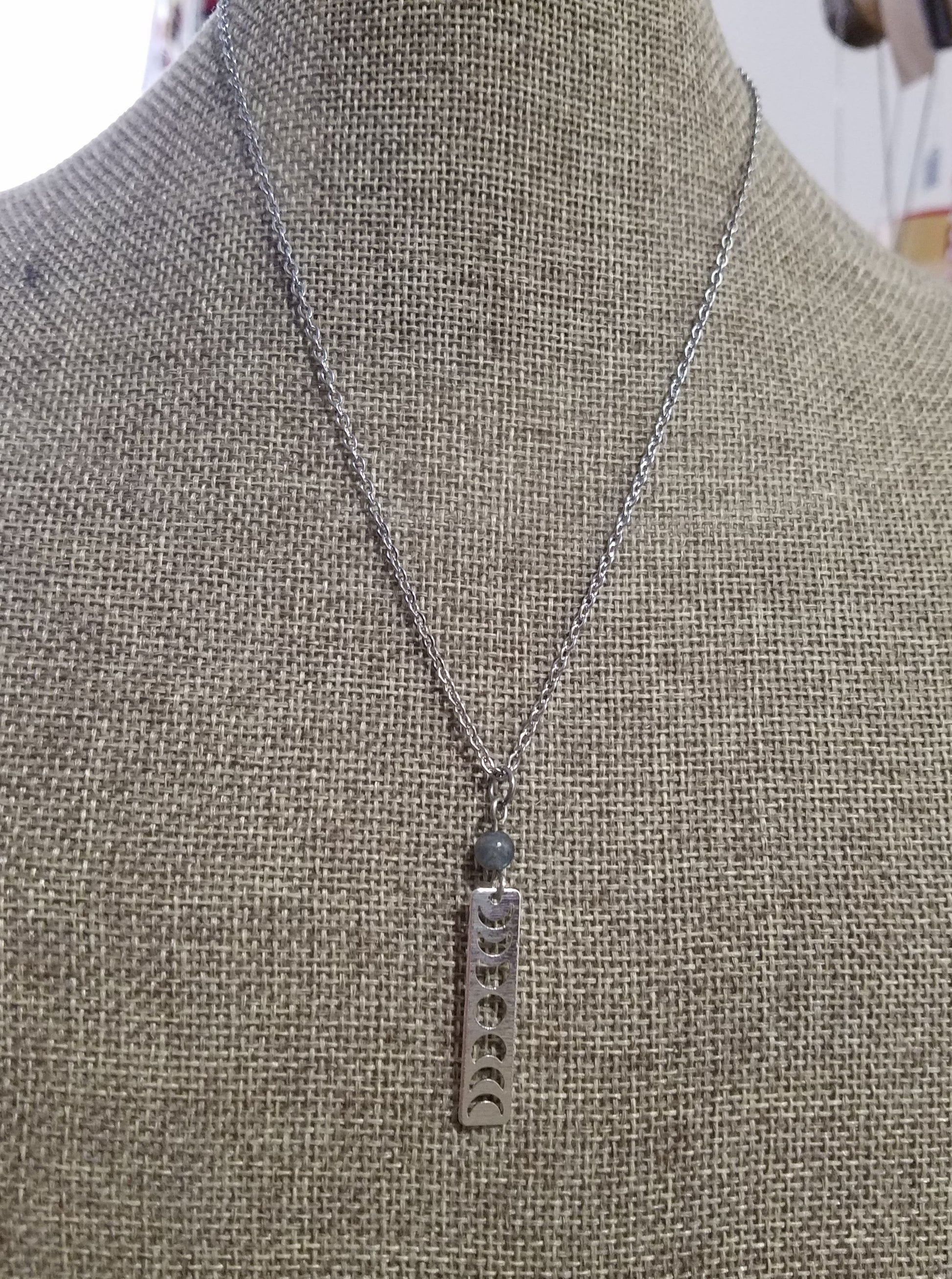 - Aleación de metal texturizado, fase lunar tallada con cuenta con acento de labradorita