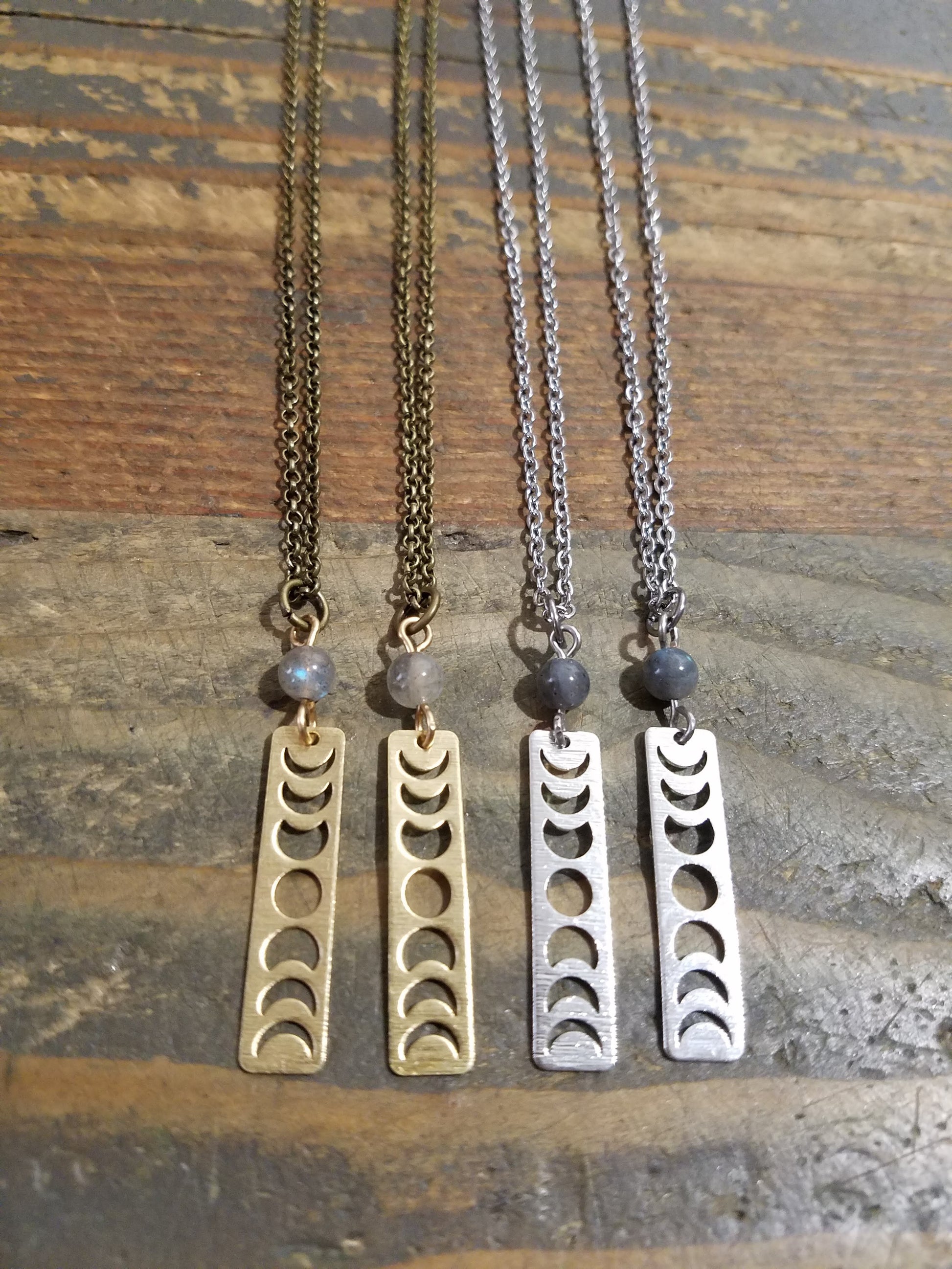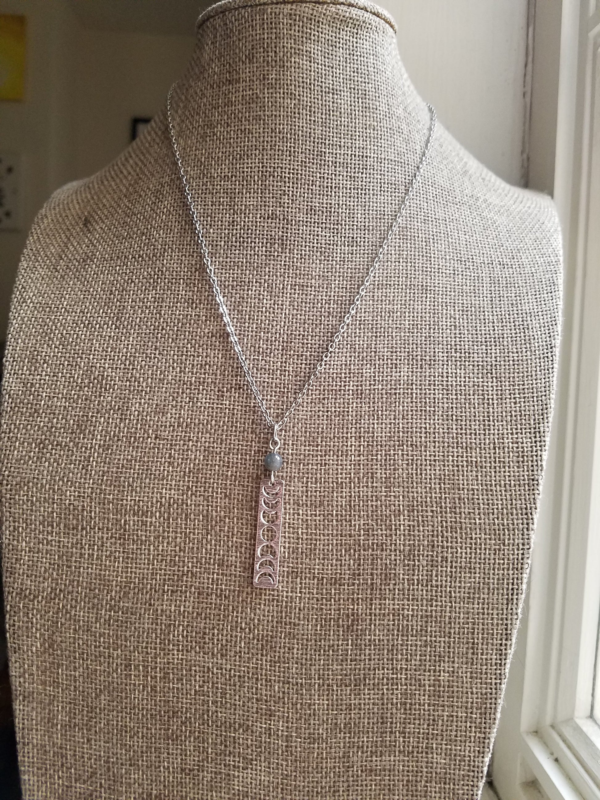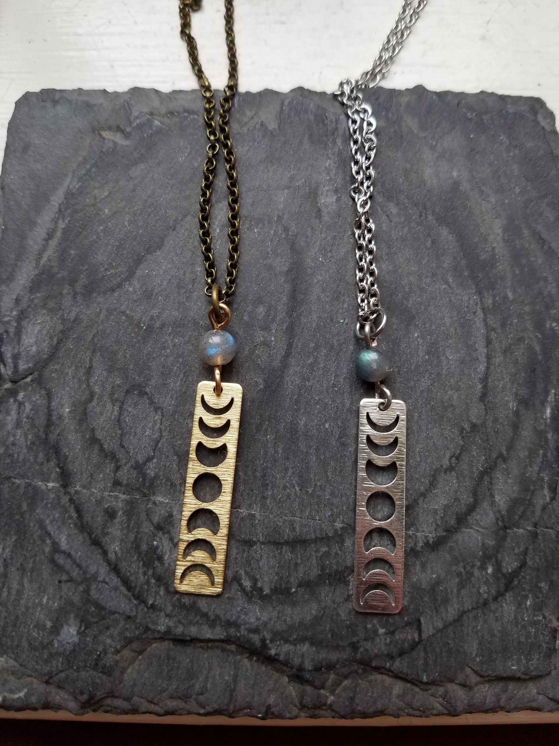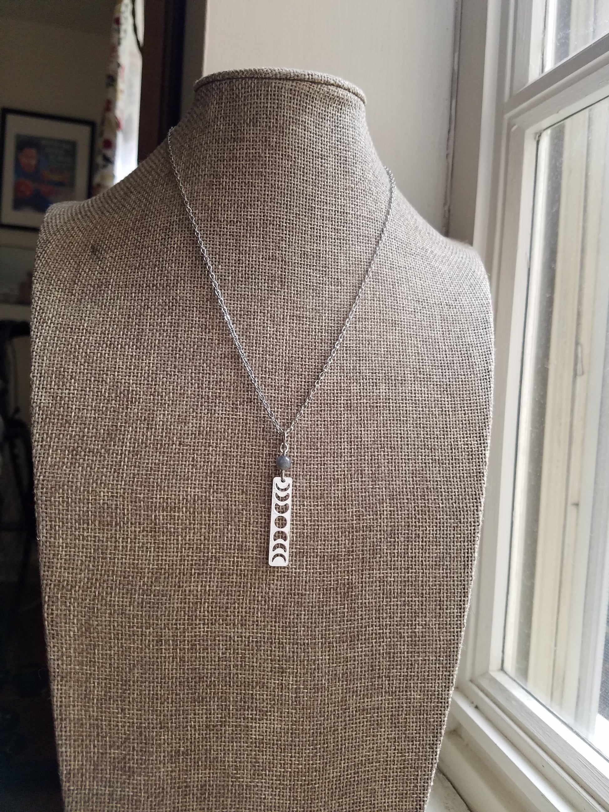 - Aleación de metal texturizado, fase lunar tallada con cuenta con acento de labradorita