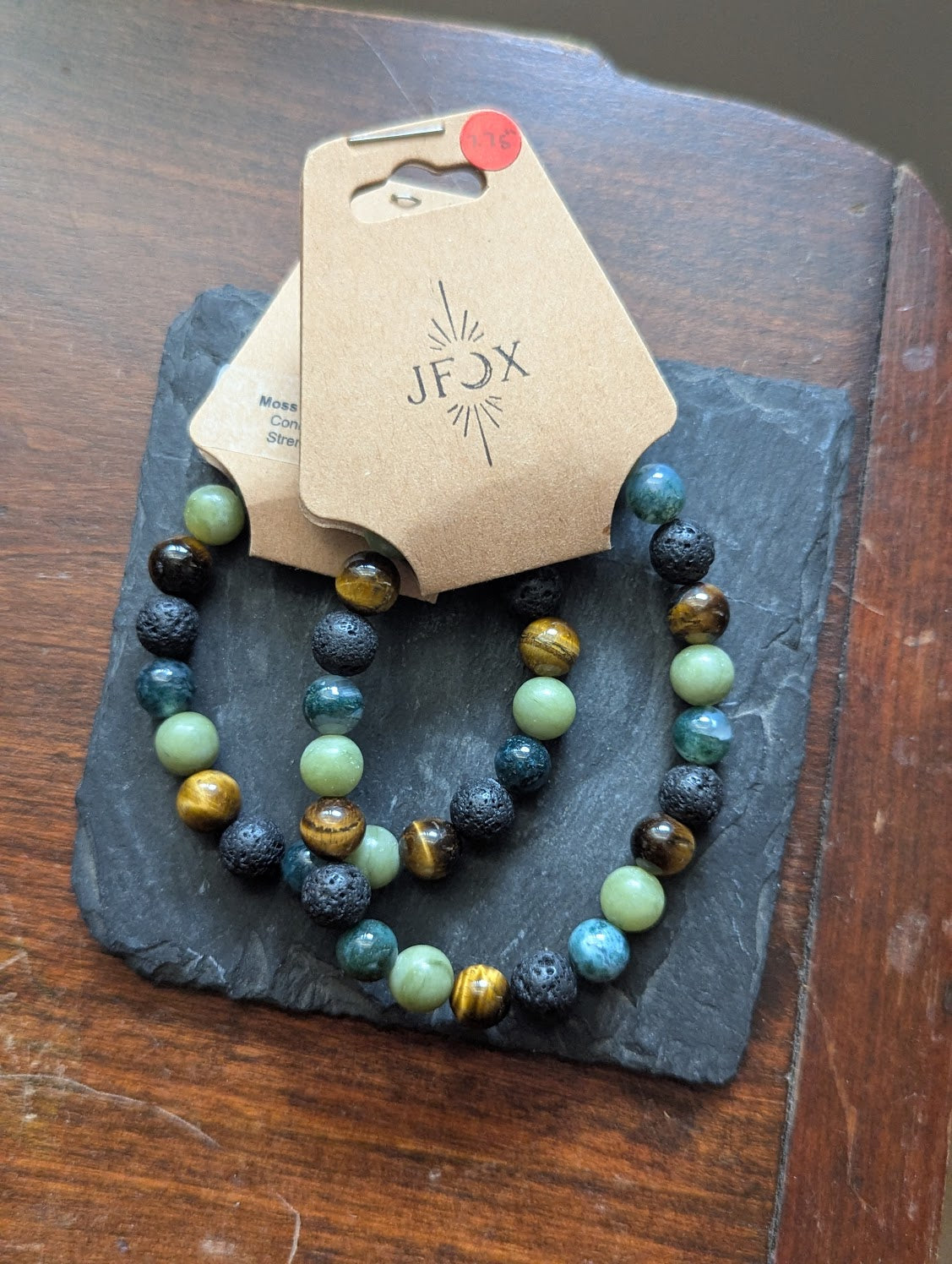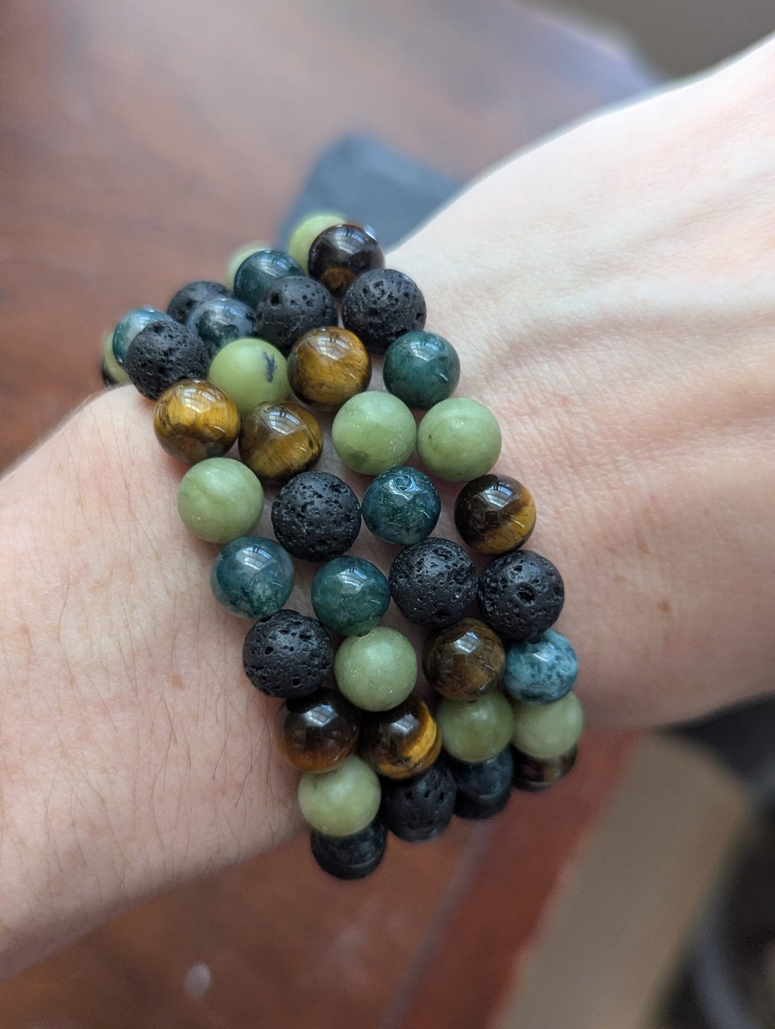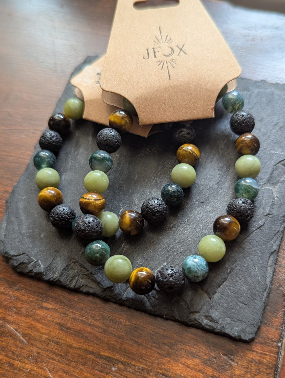 Moss Agate, Jade, Tigers Eye, Lava Bracelet (Various Sizes Available)