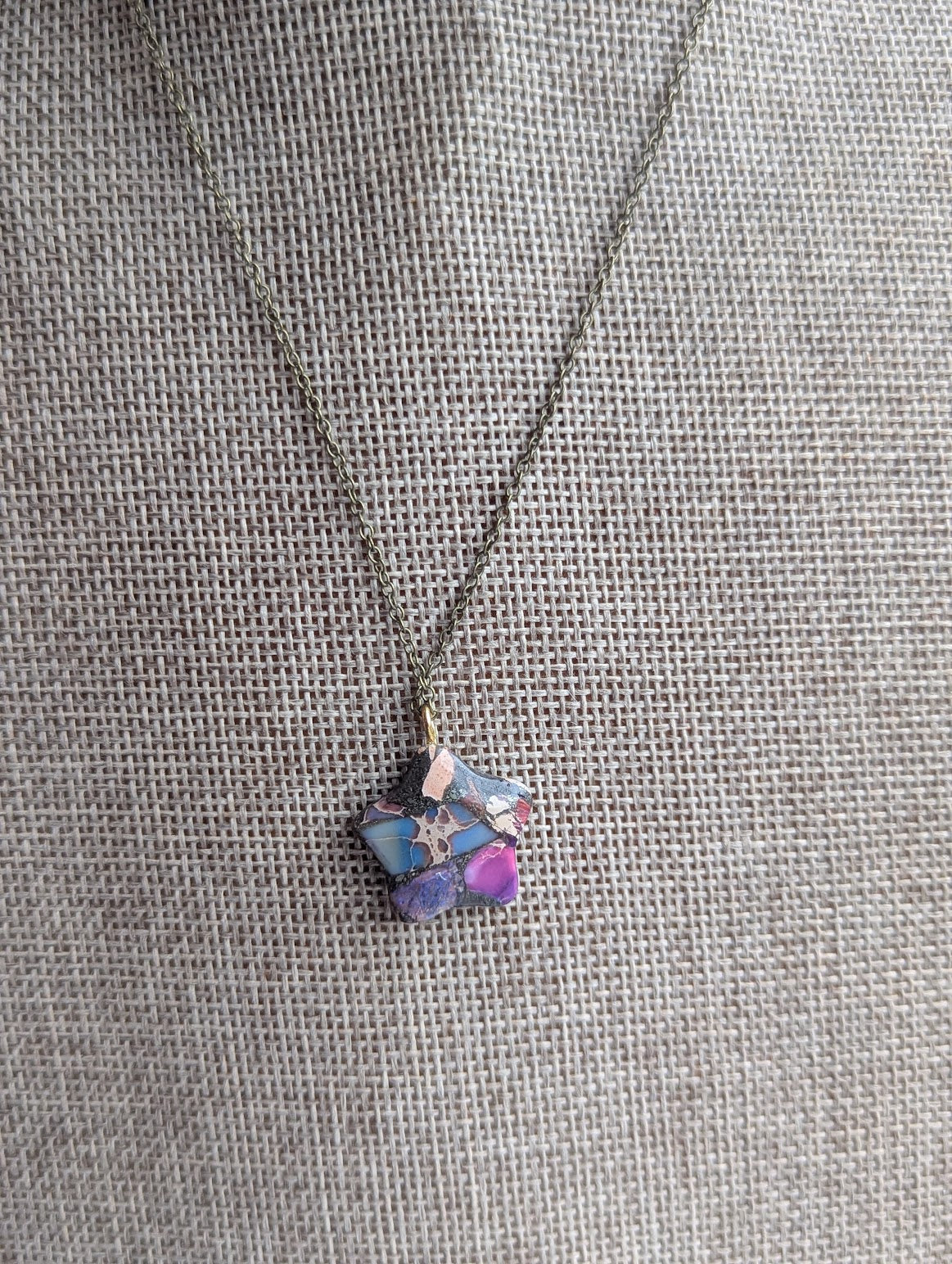 Sea Sediment Jasper Star Brass Necklace (Various Colors Available)