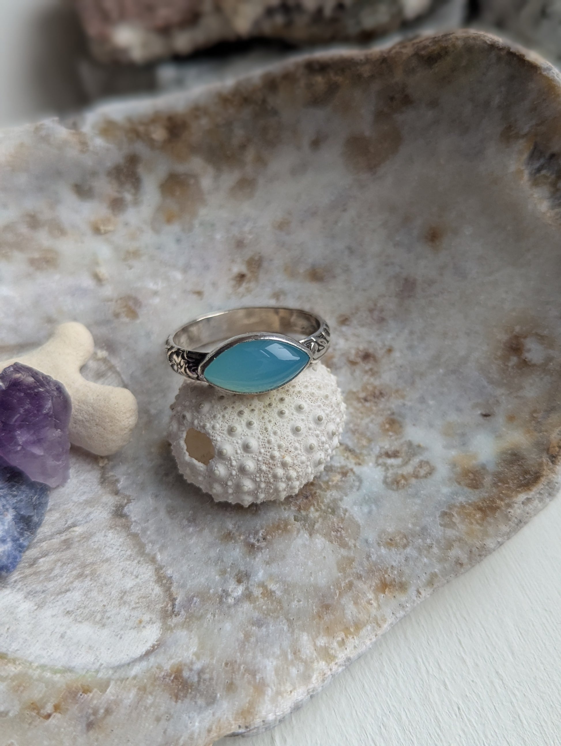 Aqua Chalcedony Marquise Sterling Silver Ring - Size 10.5