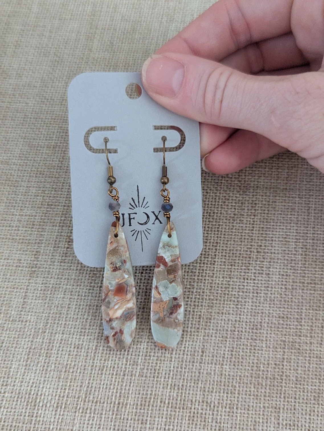 Aqua Terra Jasper Tear Drop Earrings in Brass