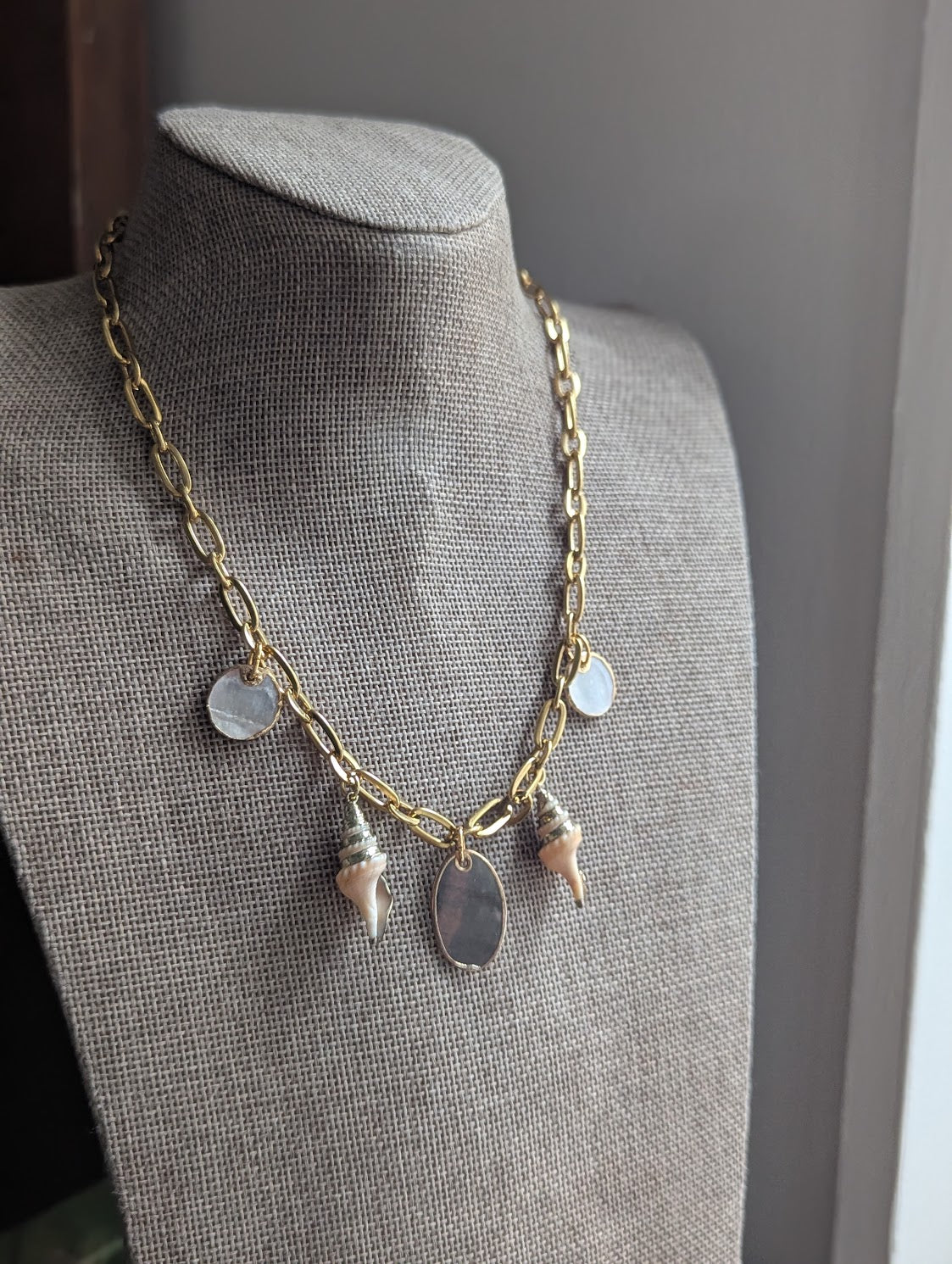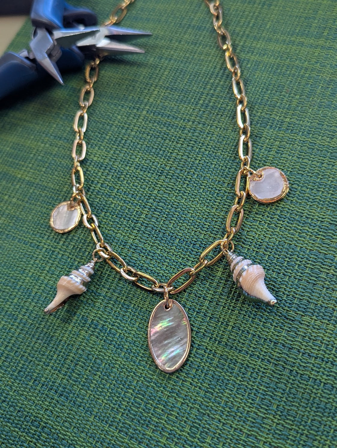 - A mix of shell and beachy charm necklace