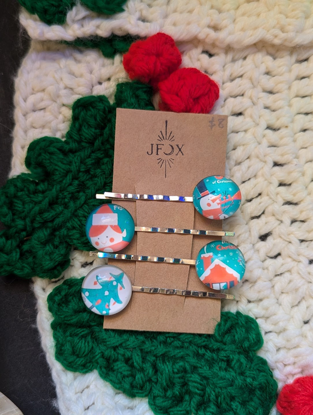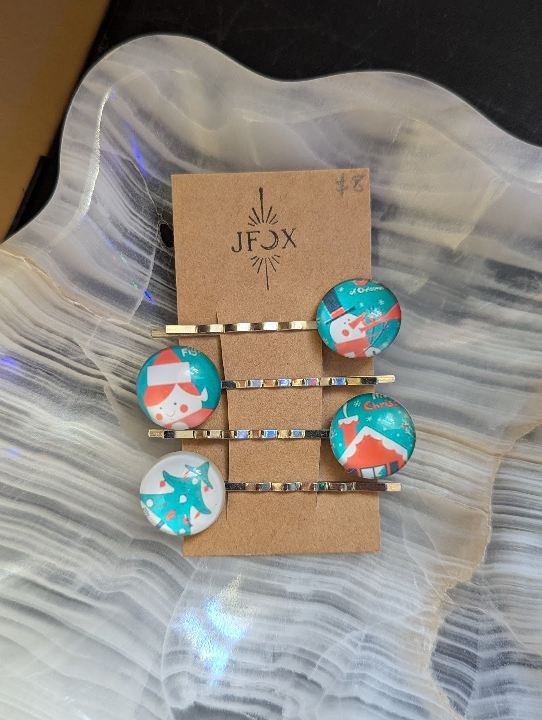 Vintage Christmas Bobby Pins Mixed Set of 4