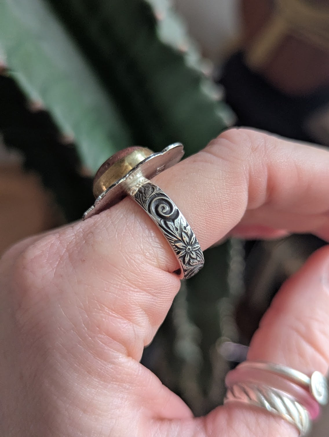 Cantera Fire Opal Floral Gold and Silver Ring - Size 8
