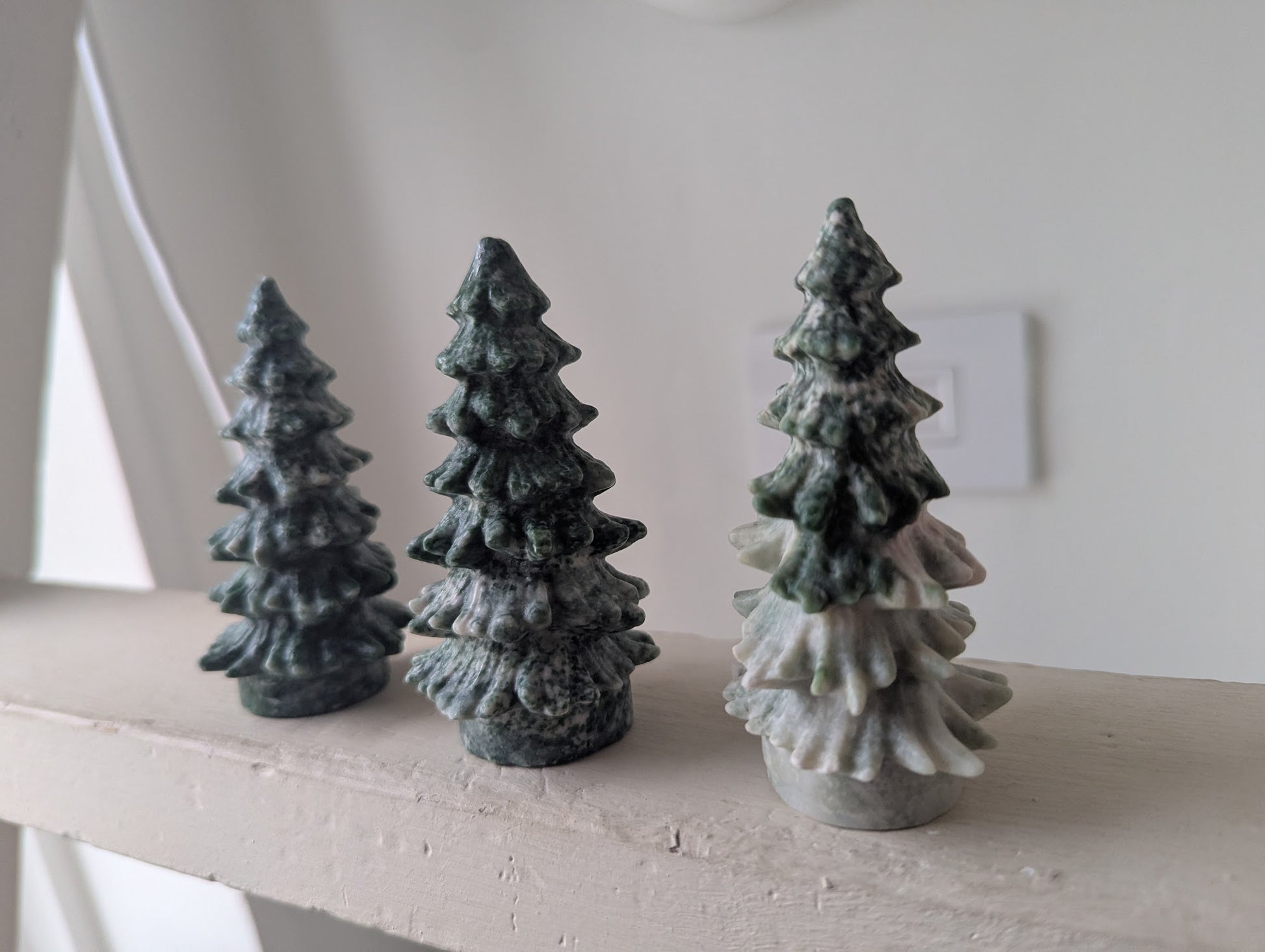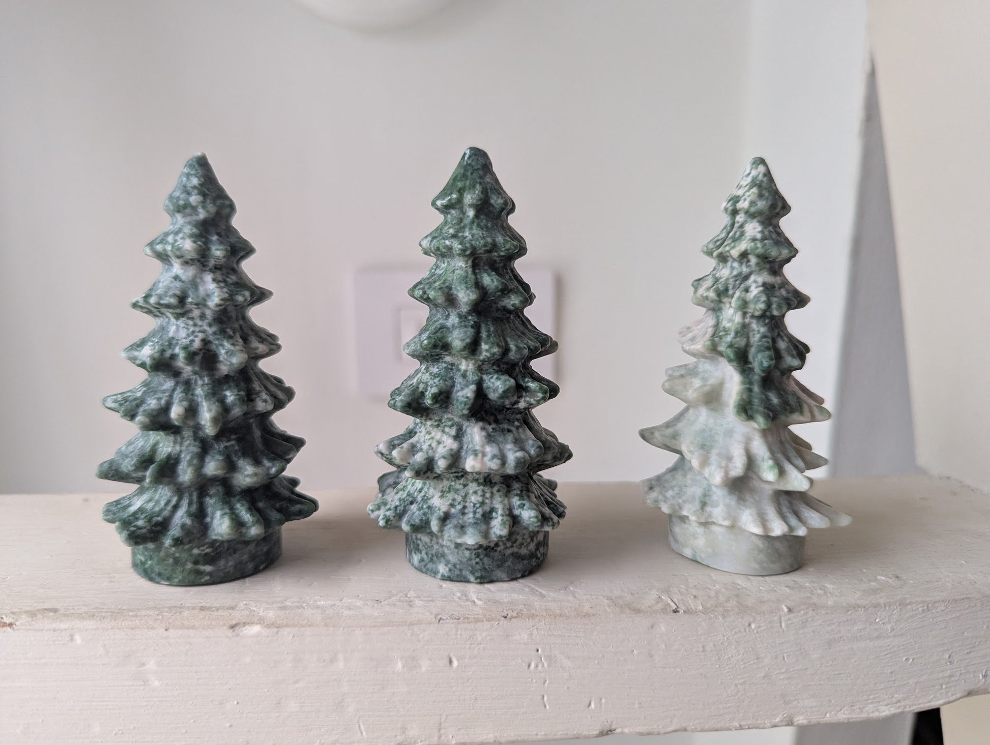 - Carved winter tree design made out of Tree Agate (speckled white and green gemstone)