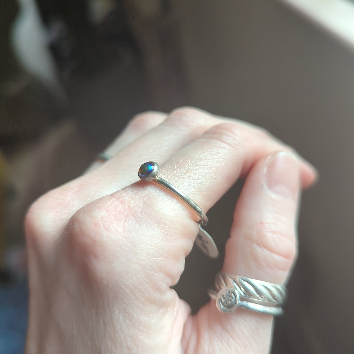 Vintage Rainbow Aura Glass Silver Stacker Rings (Various Sizes Available - Made to Order)