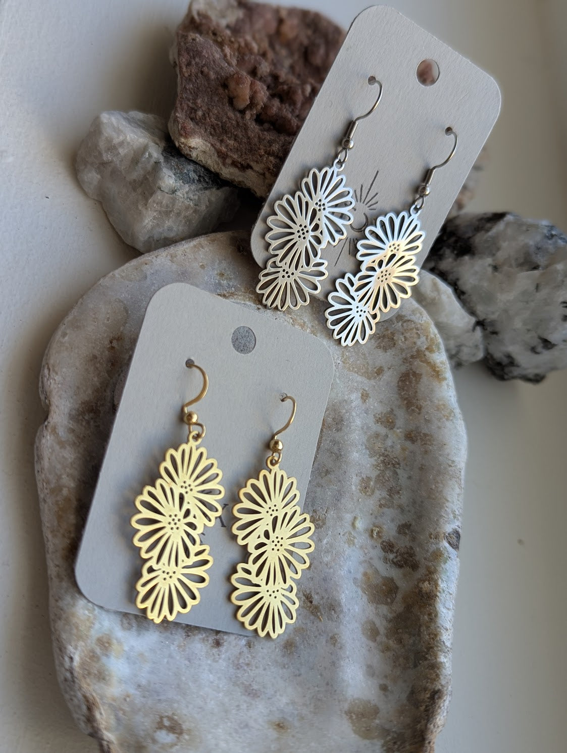 Flower Trio Stainless Steel Earrings (Silver or Gold)
