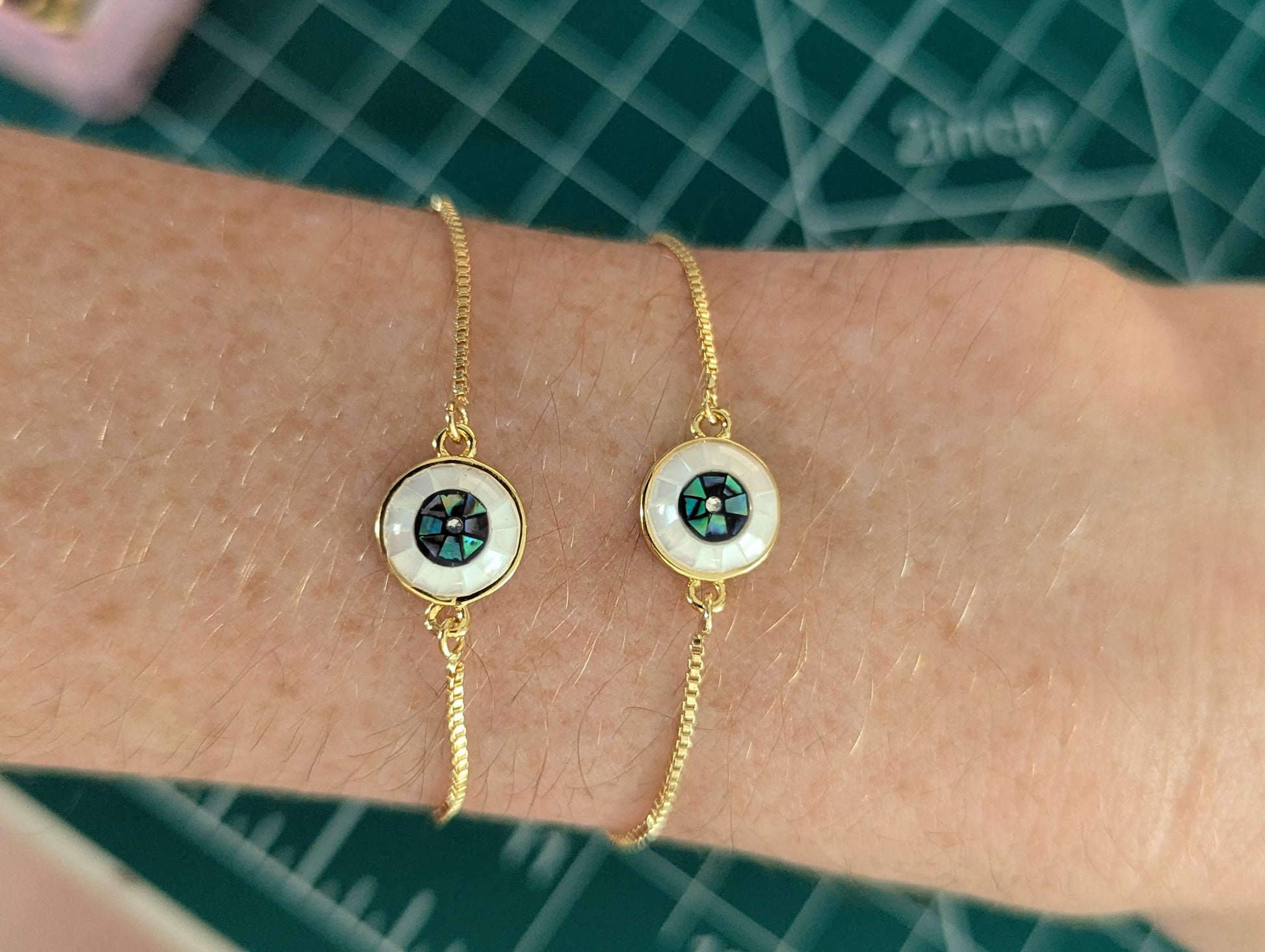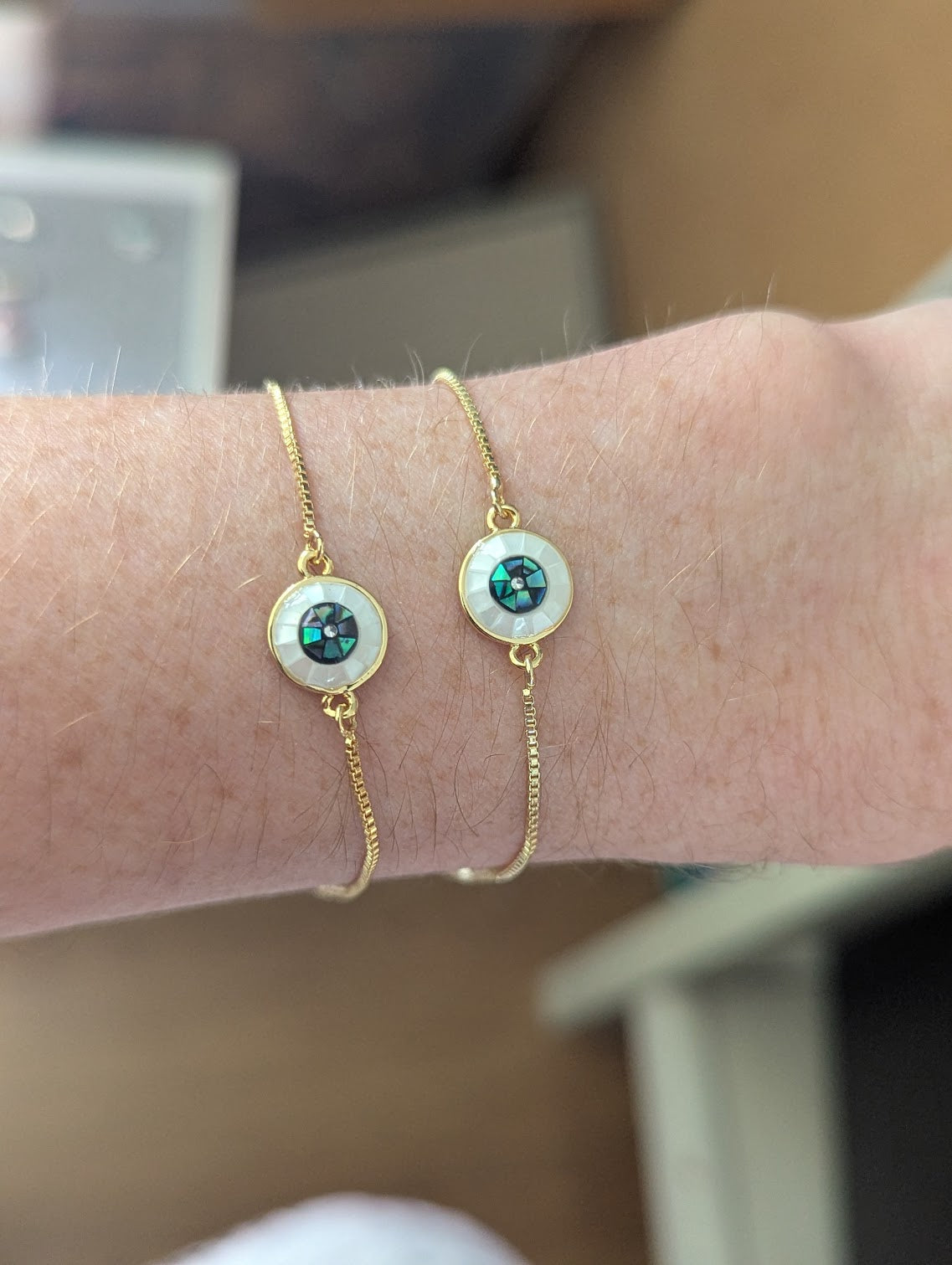 Mother of Pearl and Abalone Evil Eye Gold Slider Bracelet