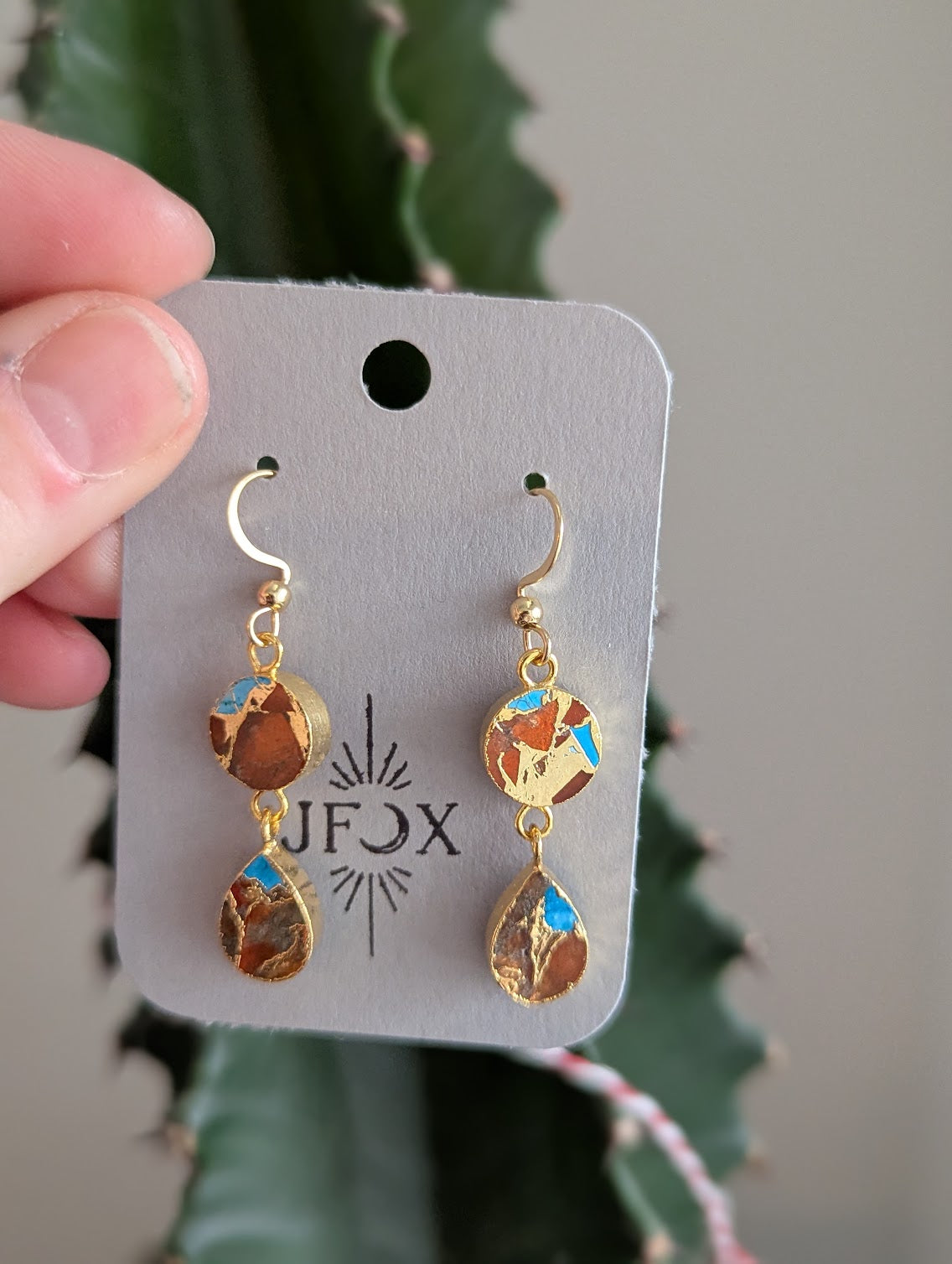 Orange and Turquoise Gold Mosaic Duo Earrings
