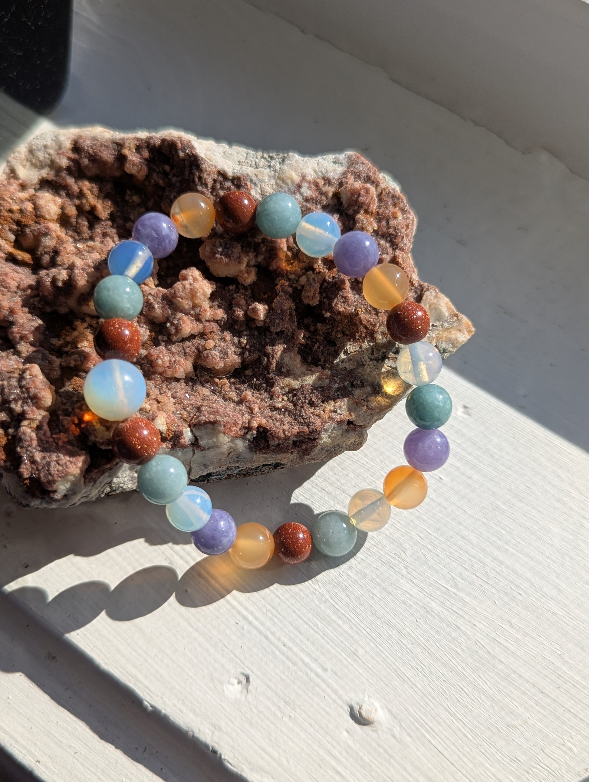 -Features a variety of gemstones including an opalite, goldstone, carnelian and more!