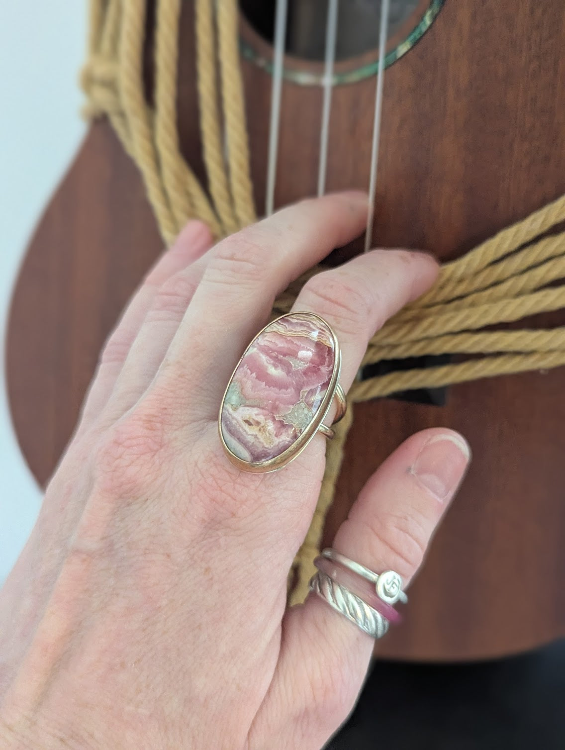 Rhodocrosite Gold and Silver Statement Ring - Size 7