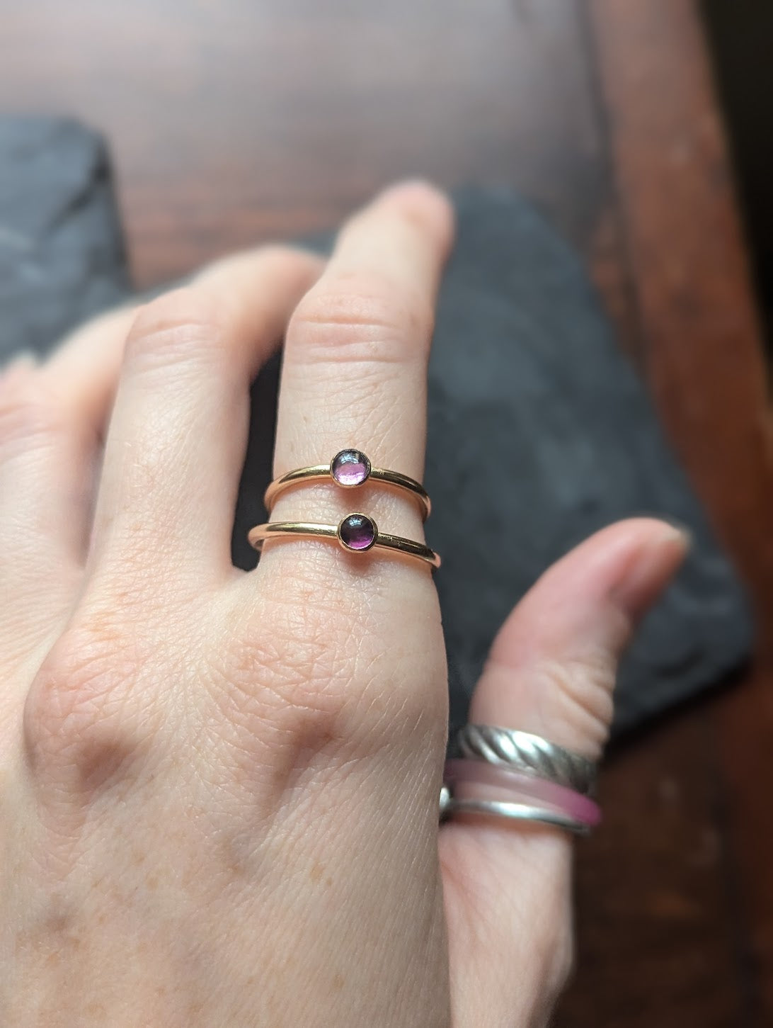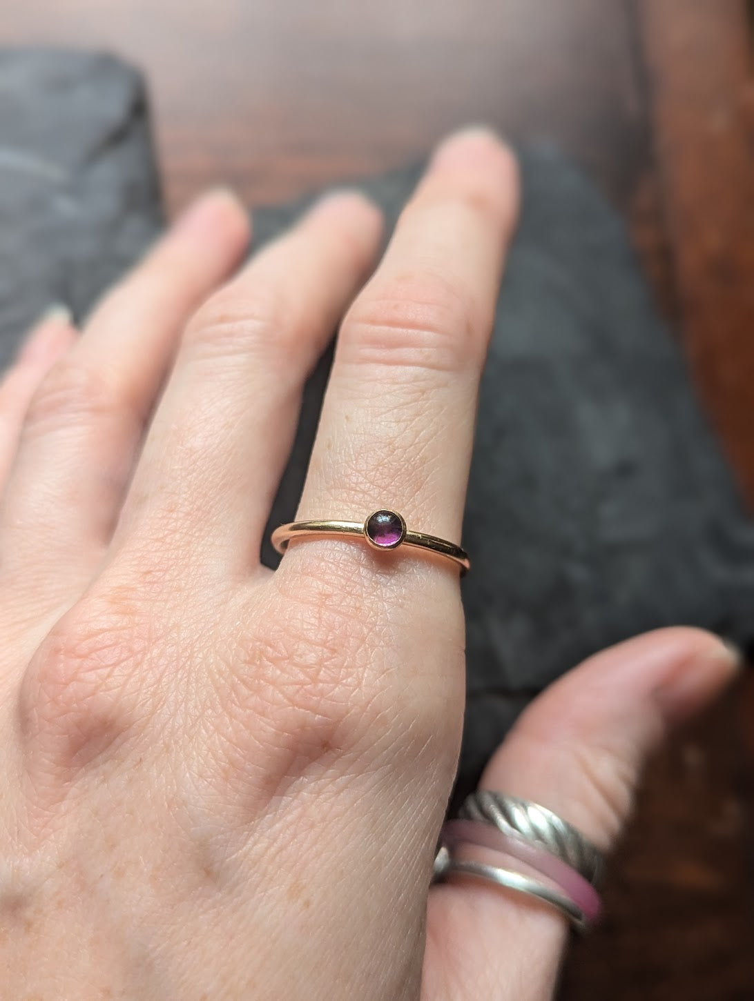 4mm Amethyst 14kGF Stacker Ring MTO (Various sizes available)