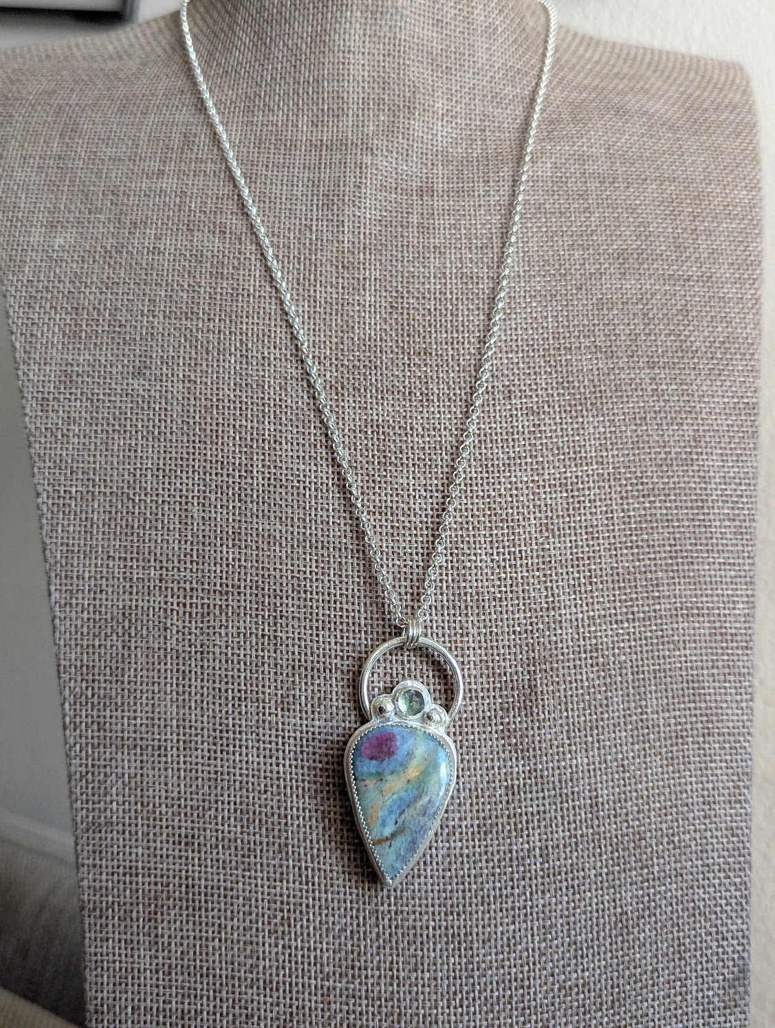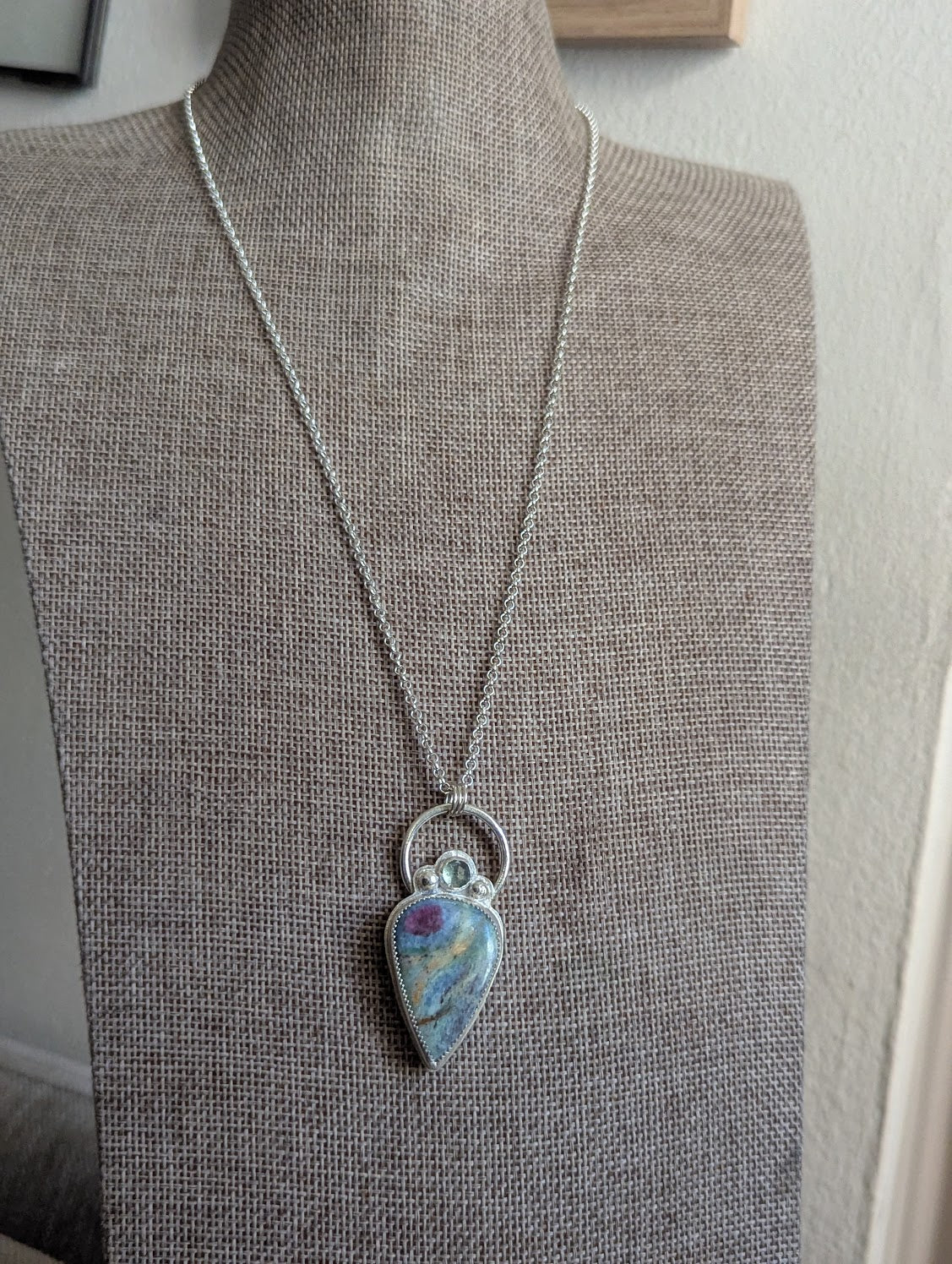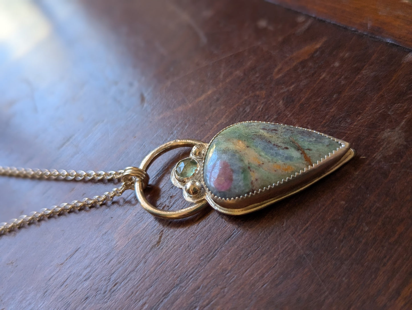 Ruby Fuchsite and Green Kyanite Full Circle Sterling Silver Necklace