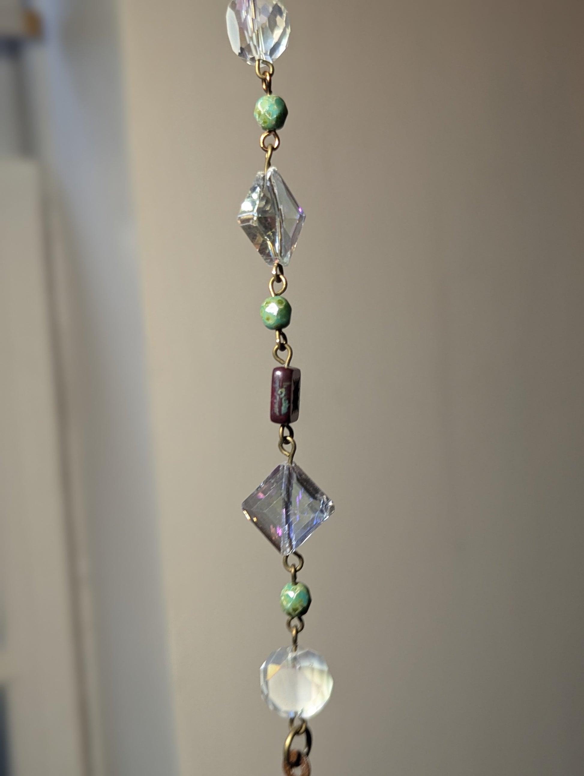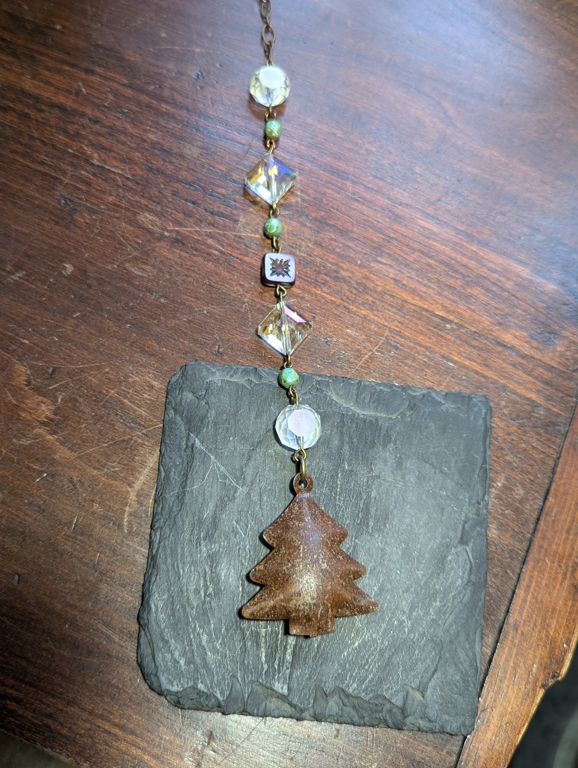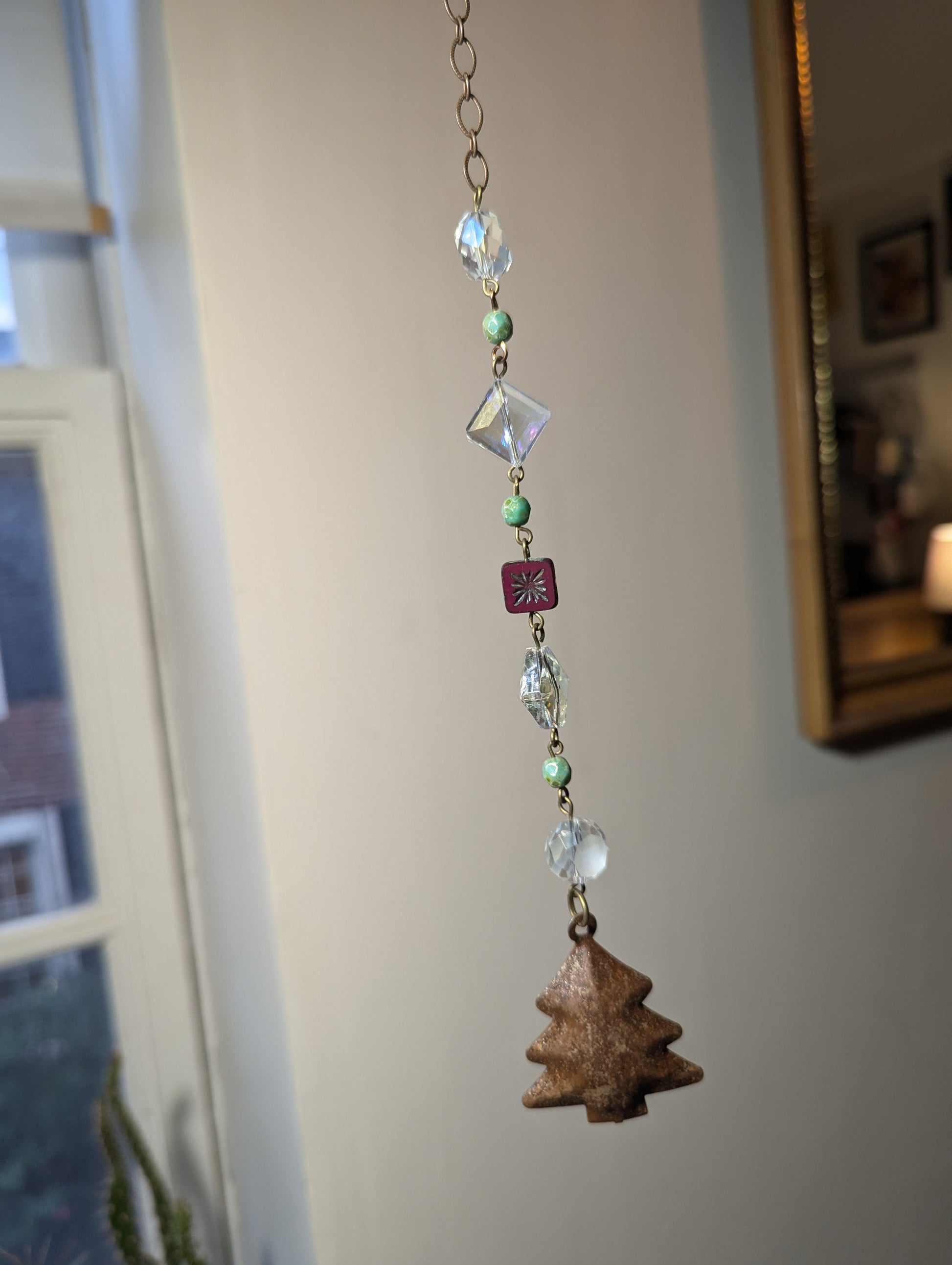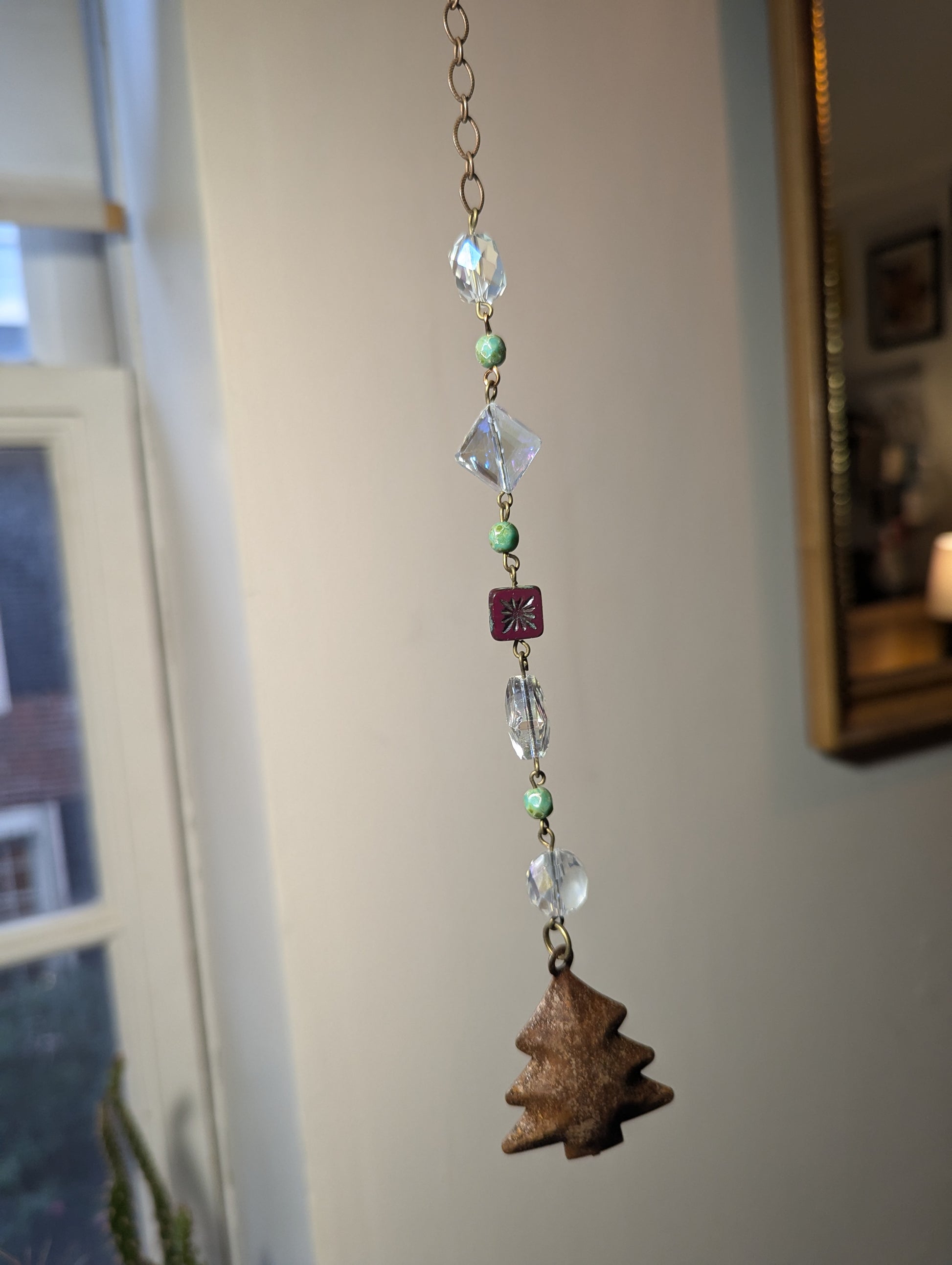 - Crystal diamond design with green and red accent glass beads