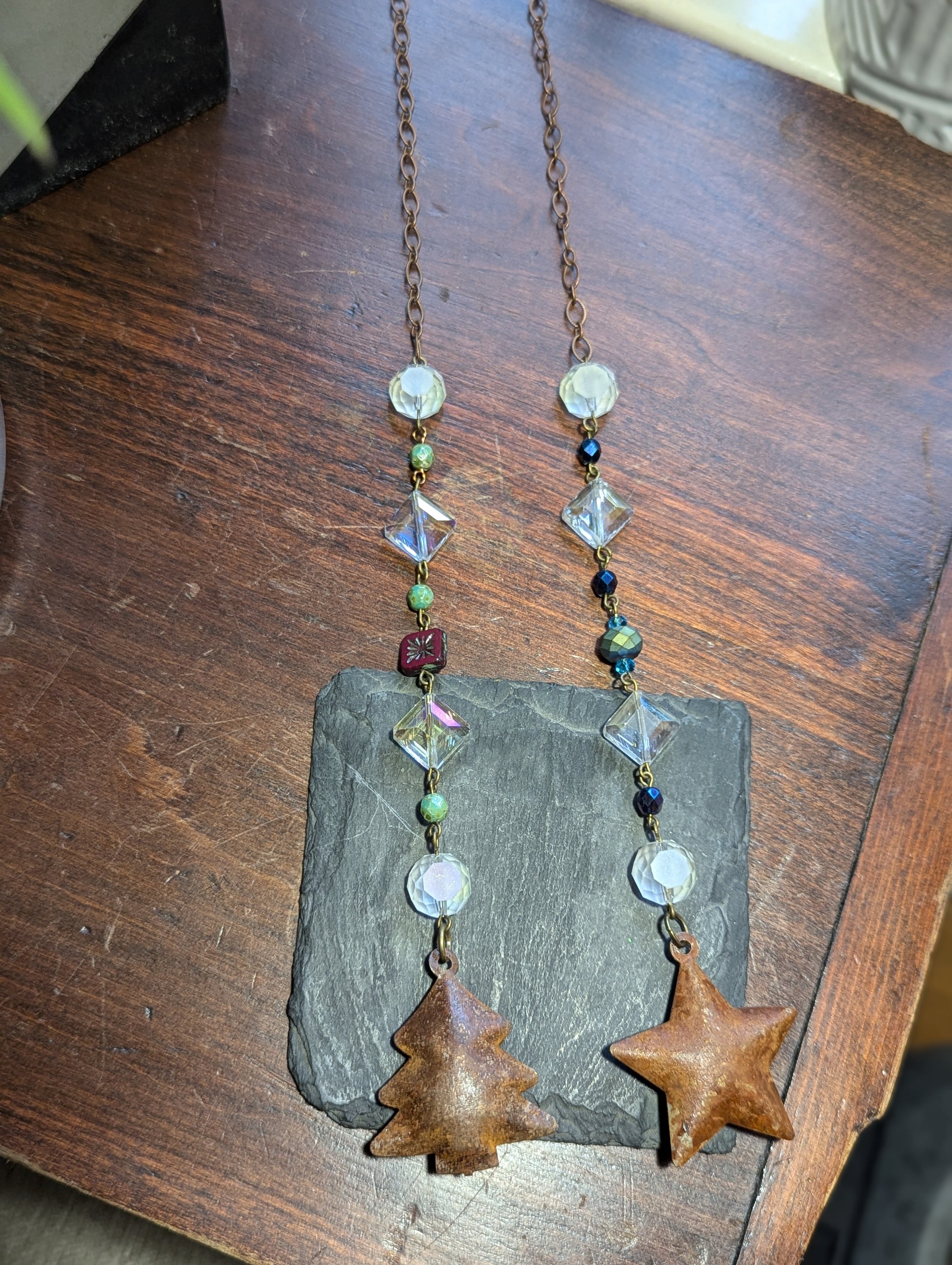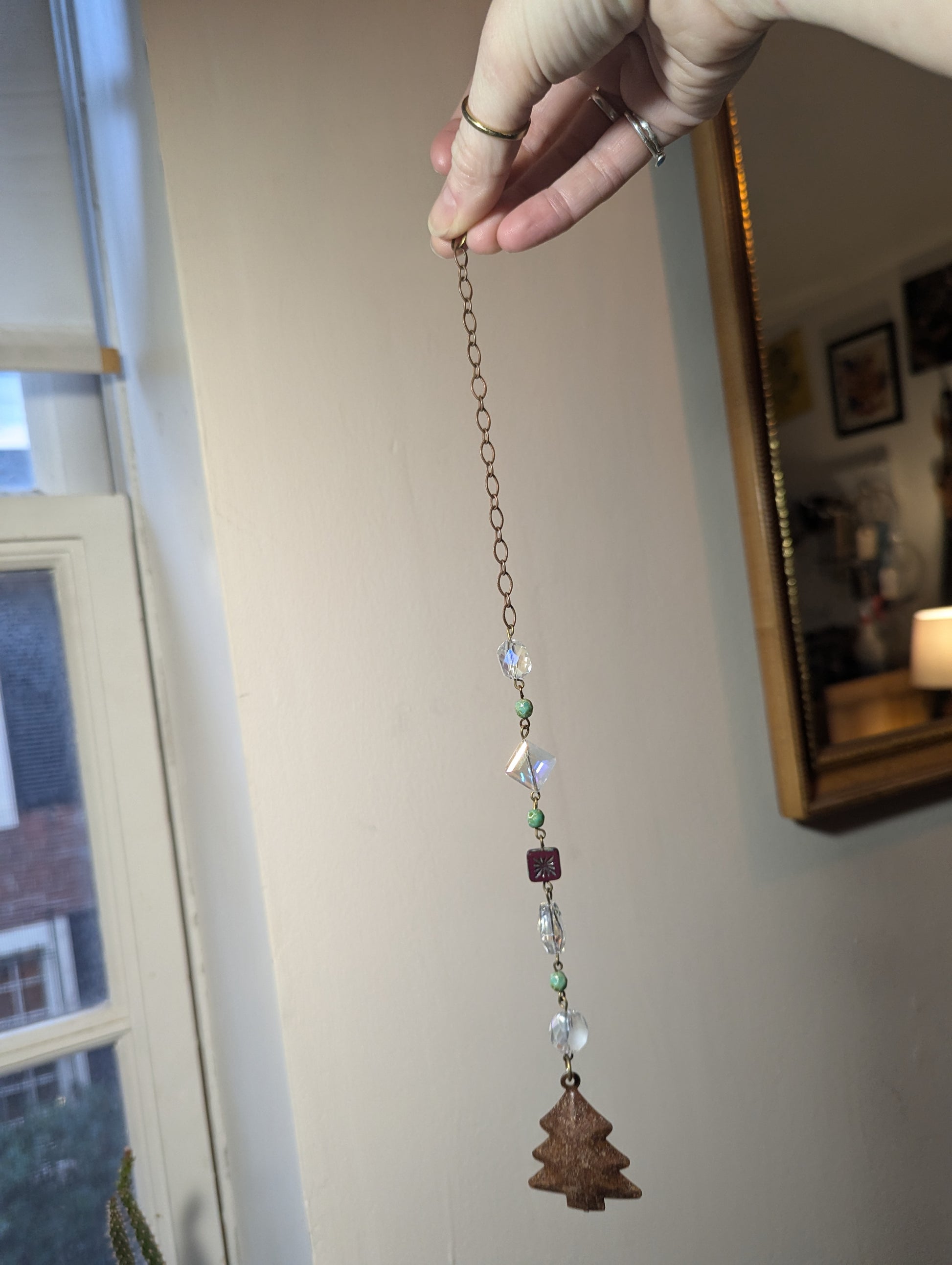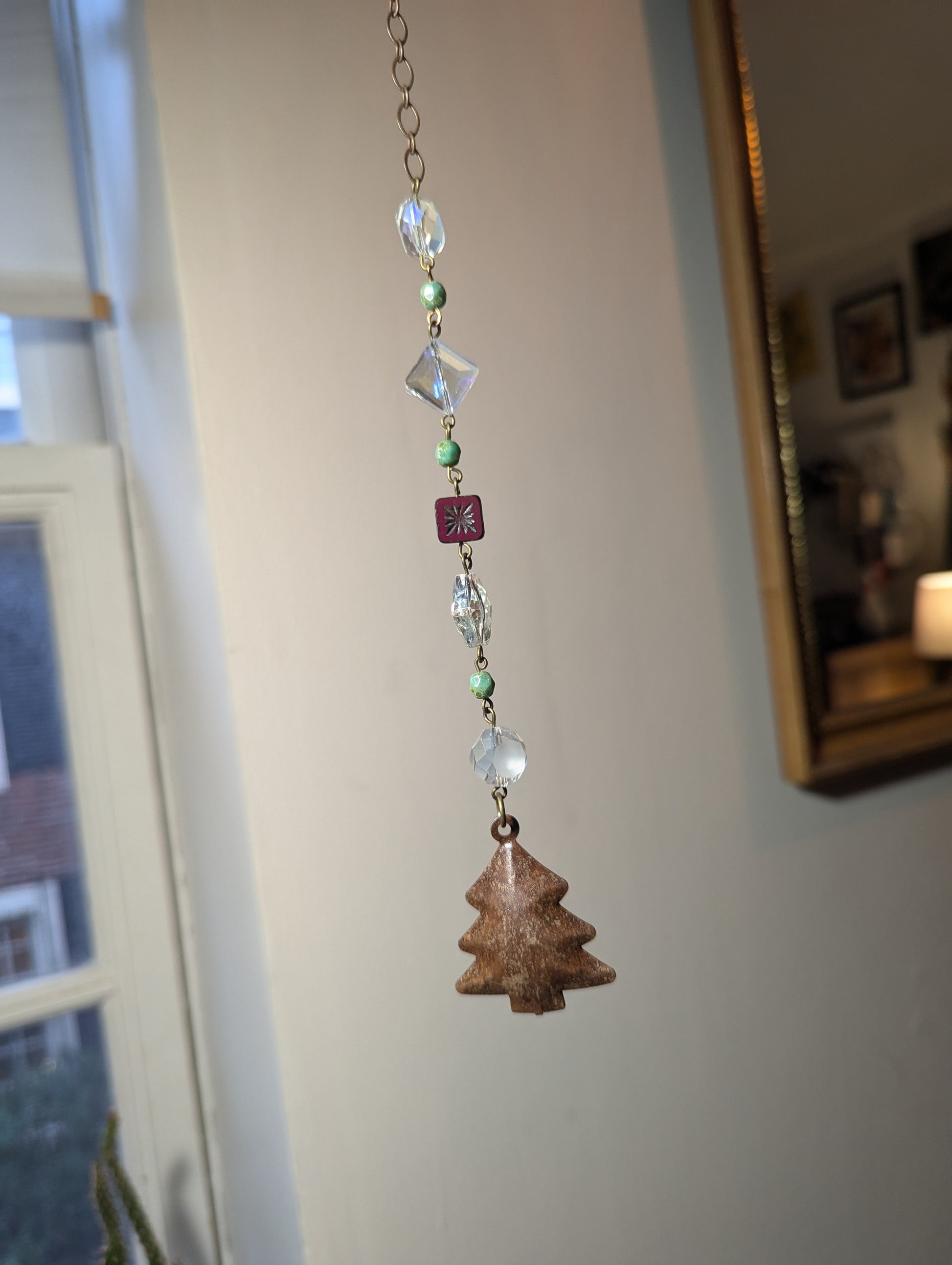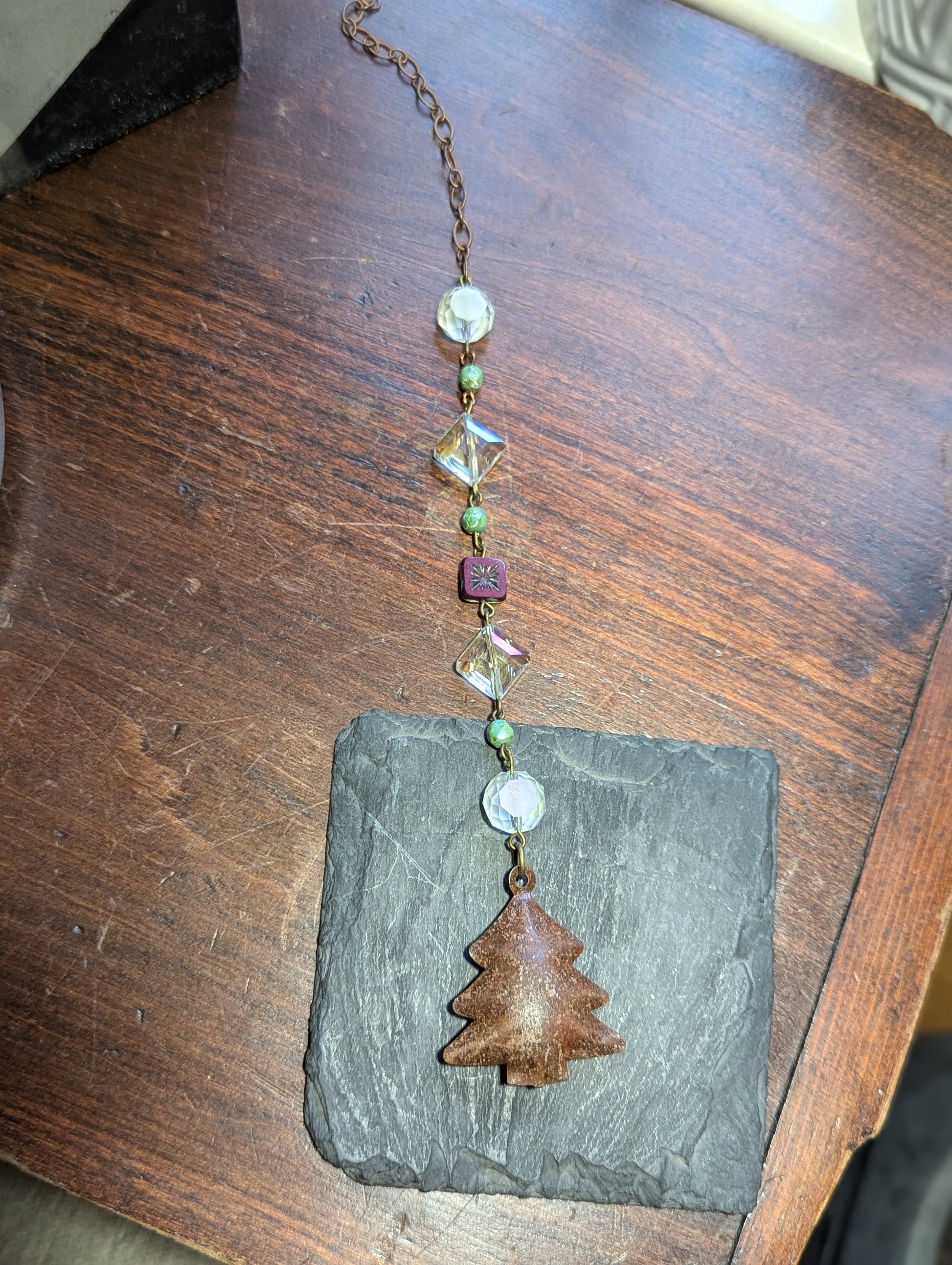 - Crystal diamond design with green and red accent glass beads