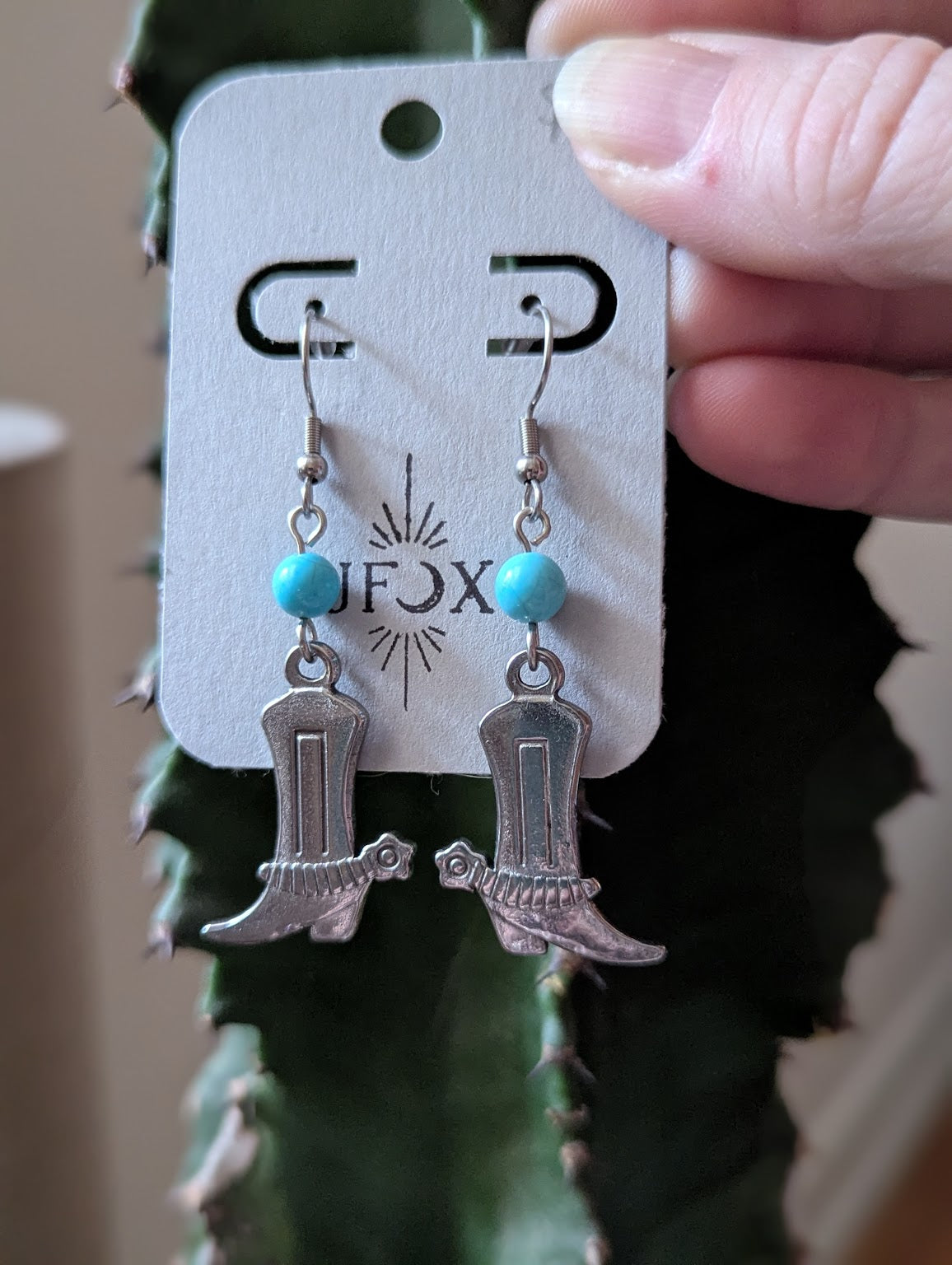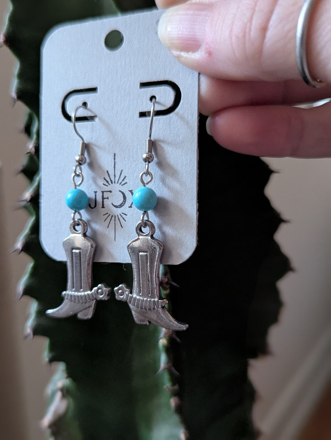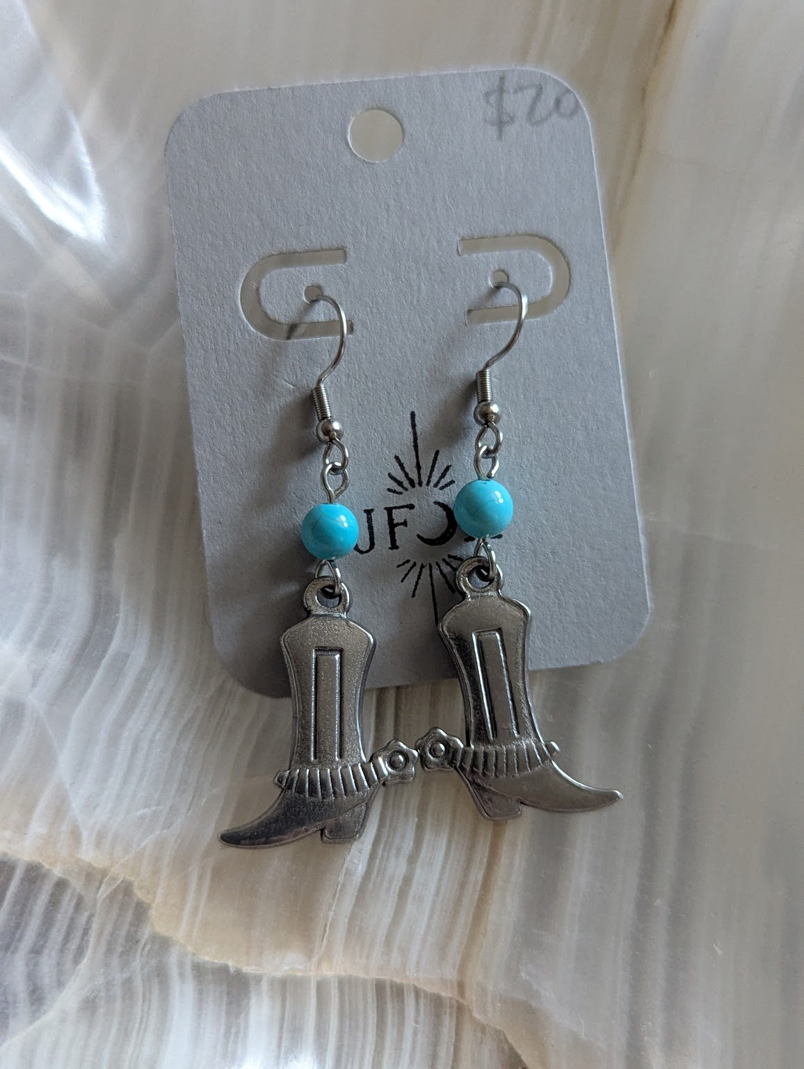 - High quality stainless steel metal cowboy boot designs with turquoise accent beads