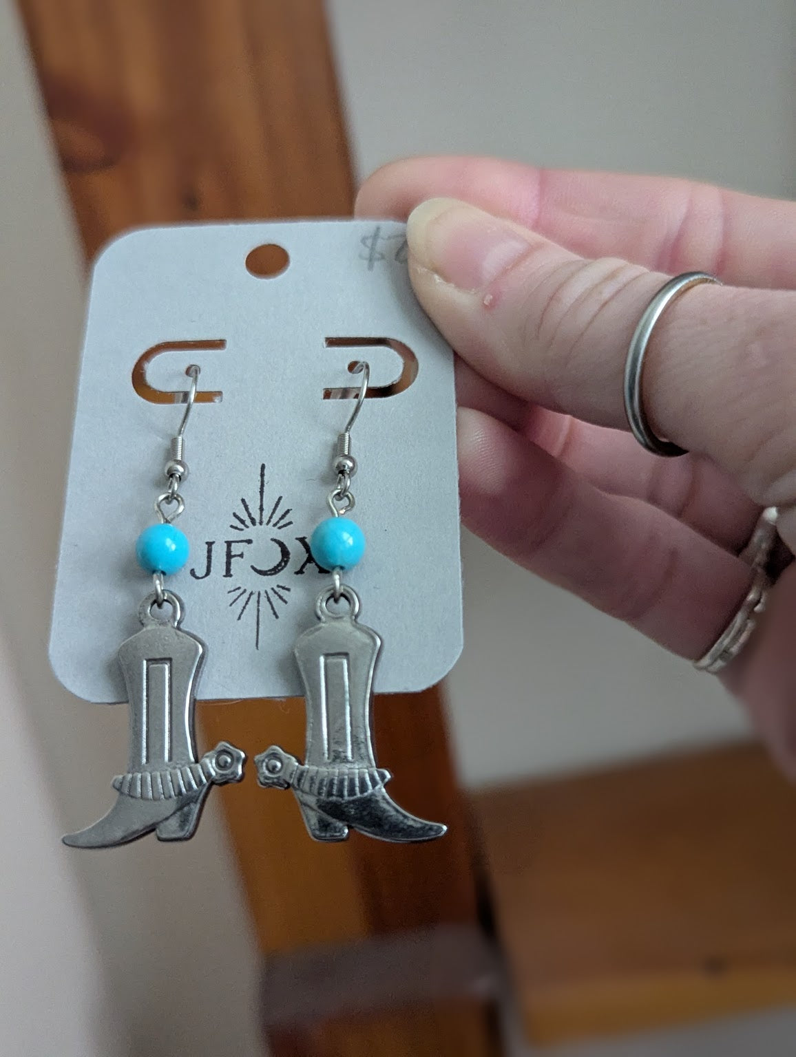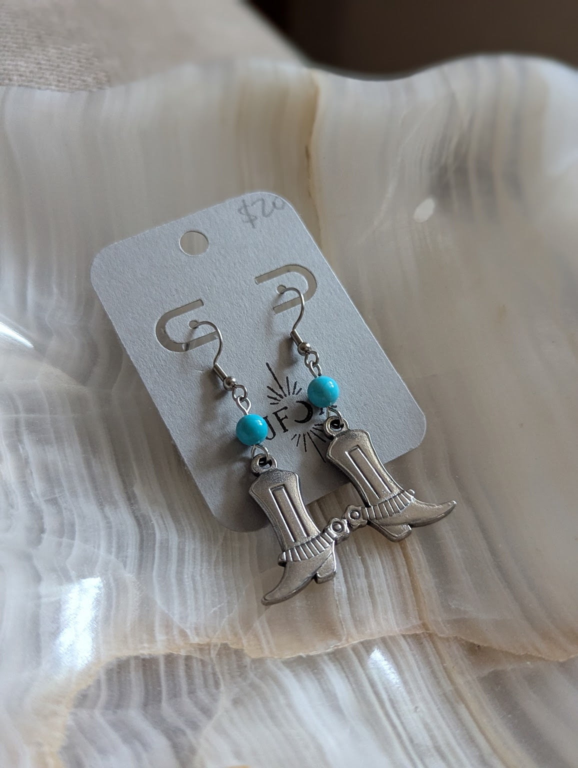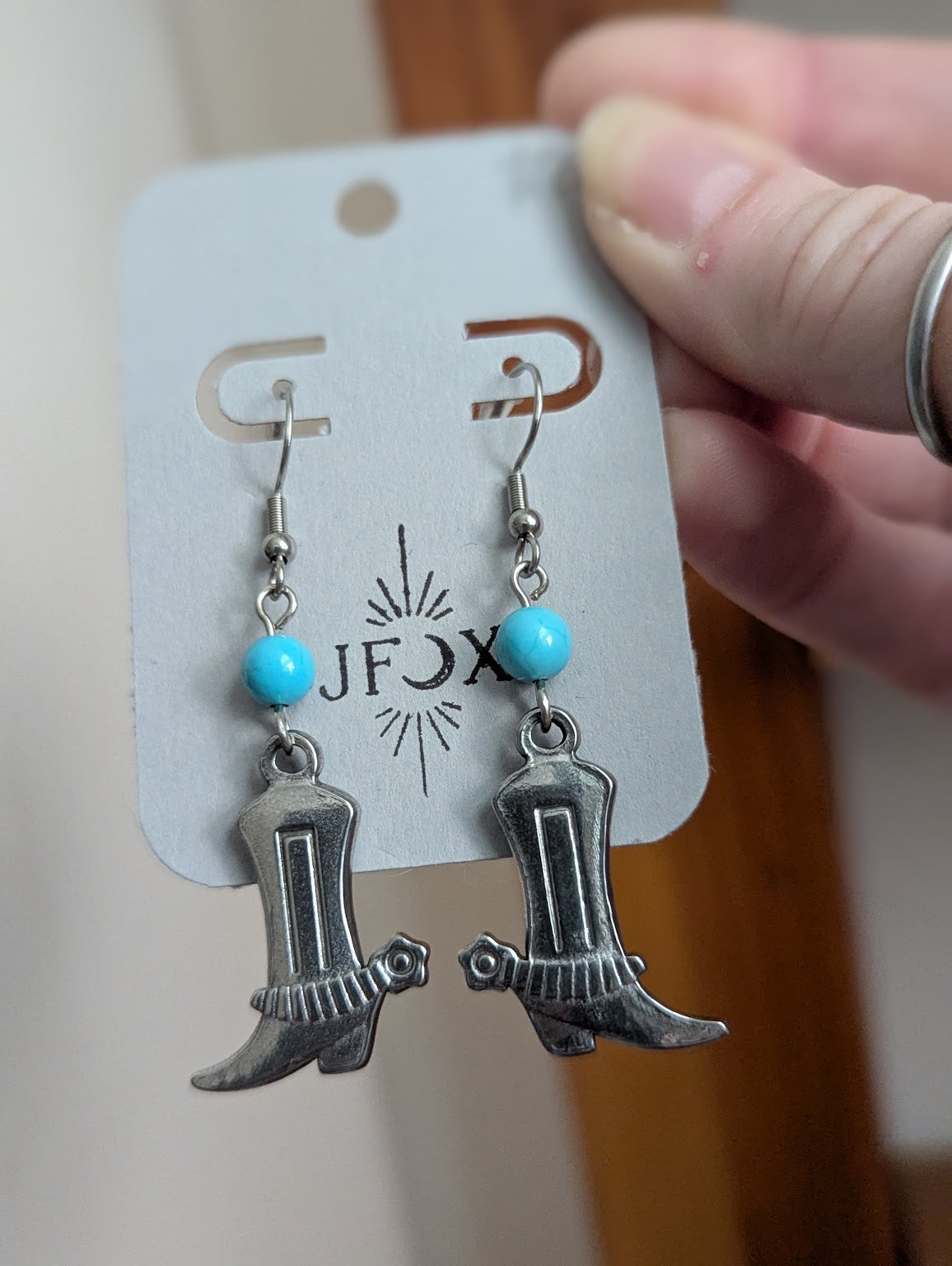 - High quality stainless steel metal cowboy boot designs with turquoise accent beads