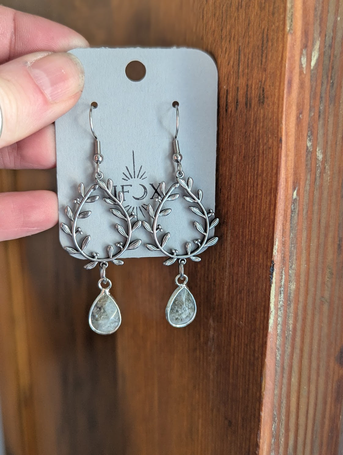 Silver Laurel Wreath Tear Drop Earrings (Labradorite or Lapis Lazuli)