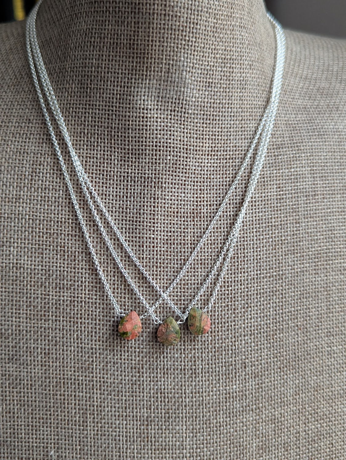 - Faceted tear drop green and pink Unakite