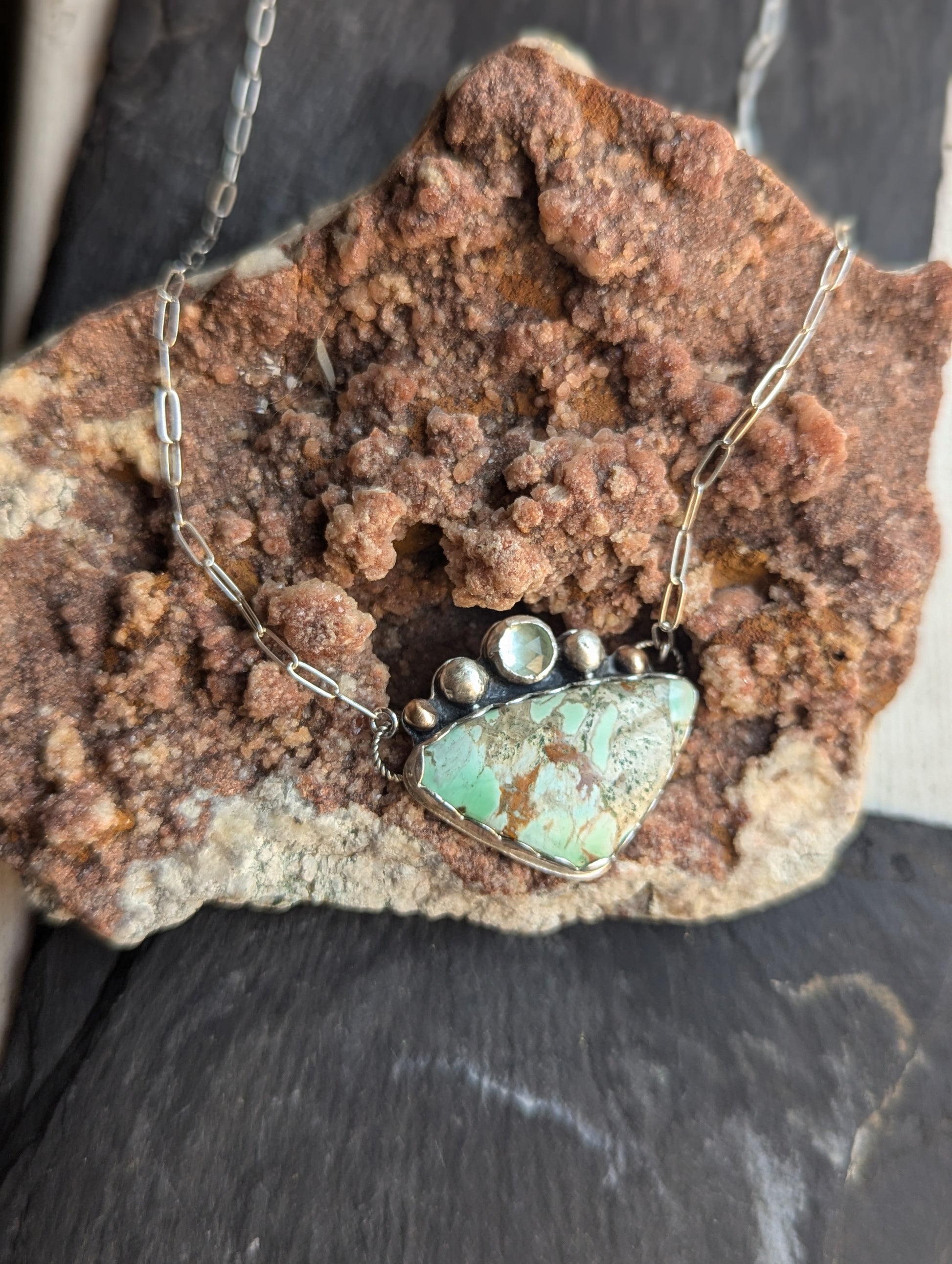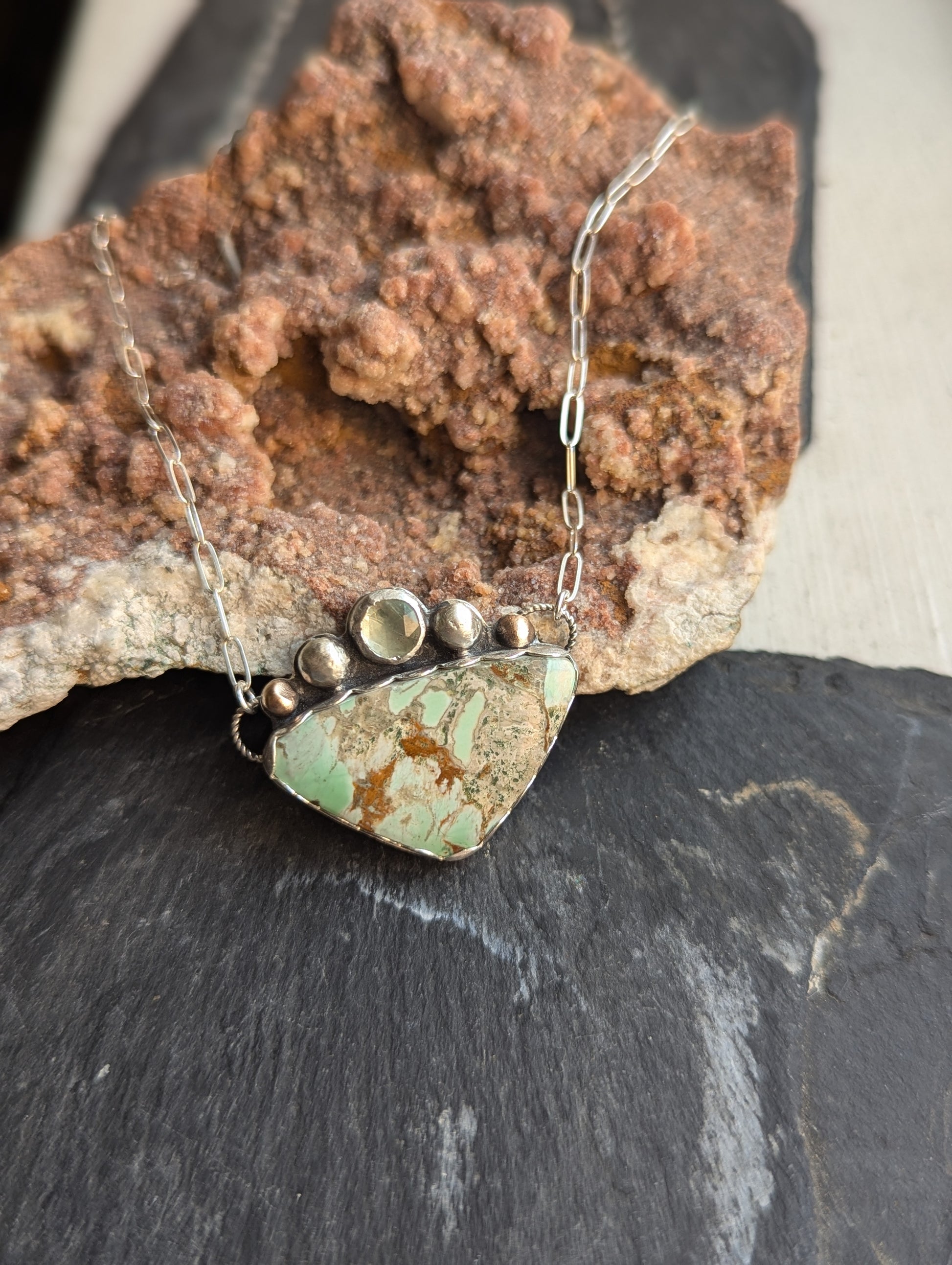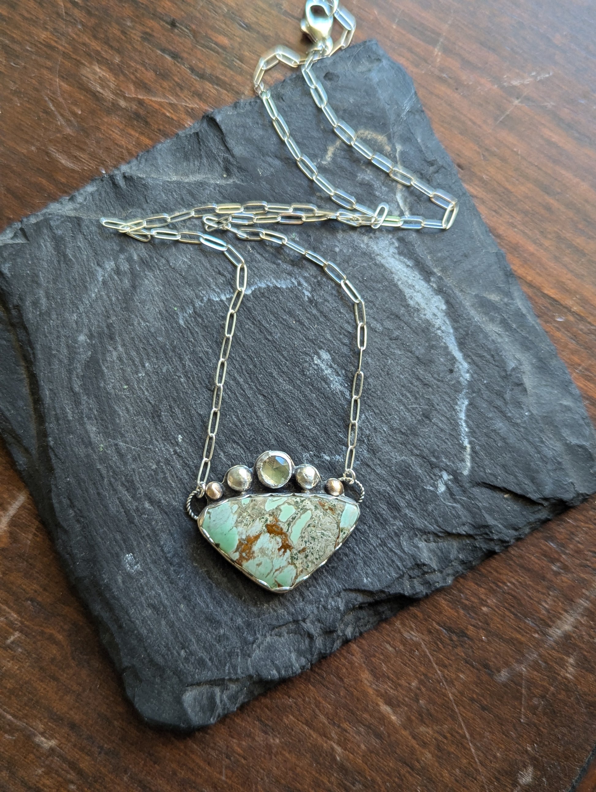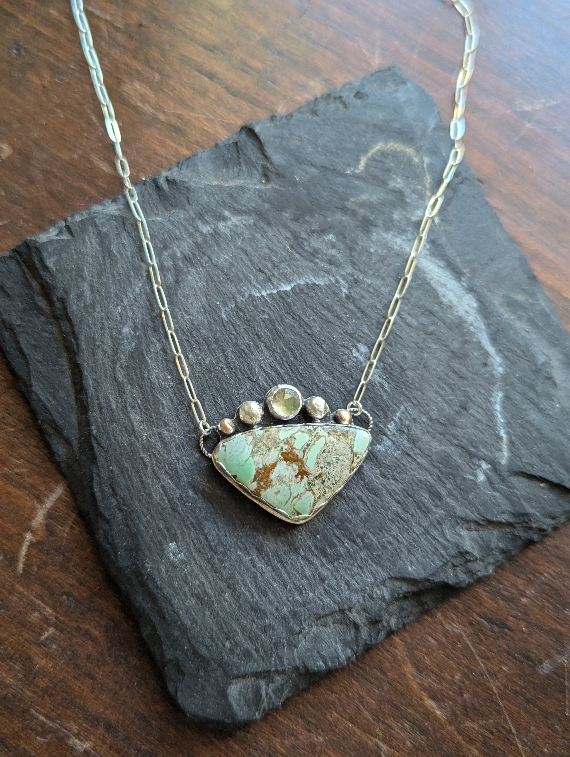 Variscite and Green Kyanite Sterling Necklace