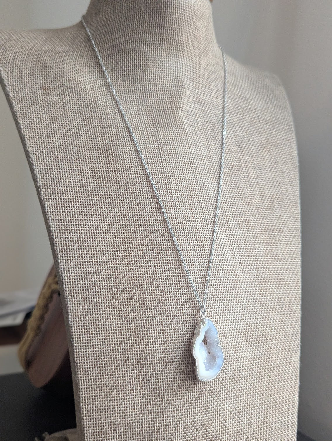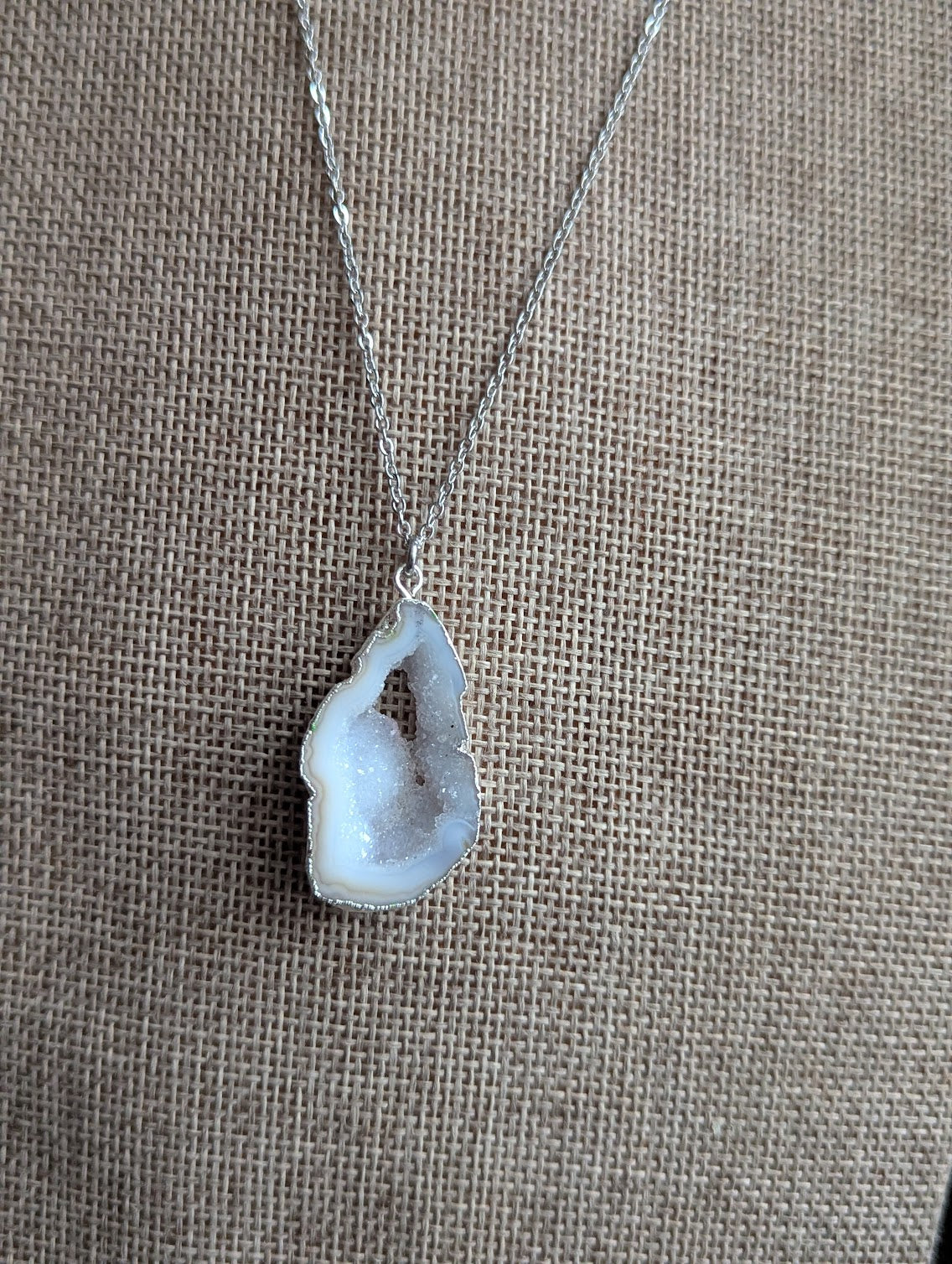 White and Grey Druzy Agate Silver Necklace (Various Options Available)
