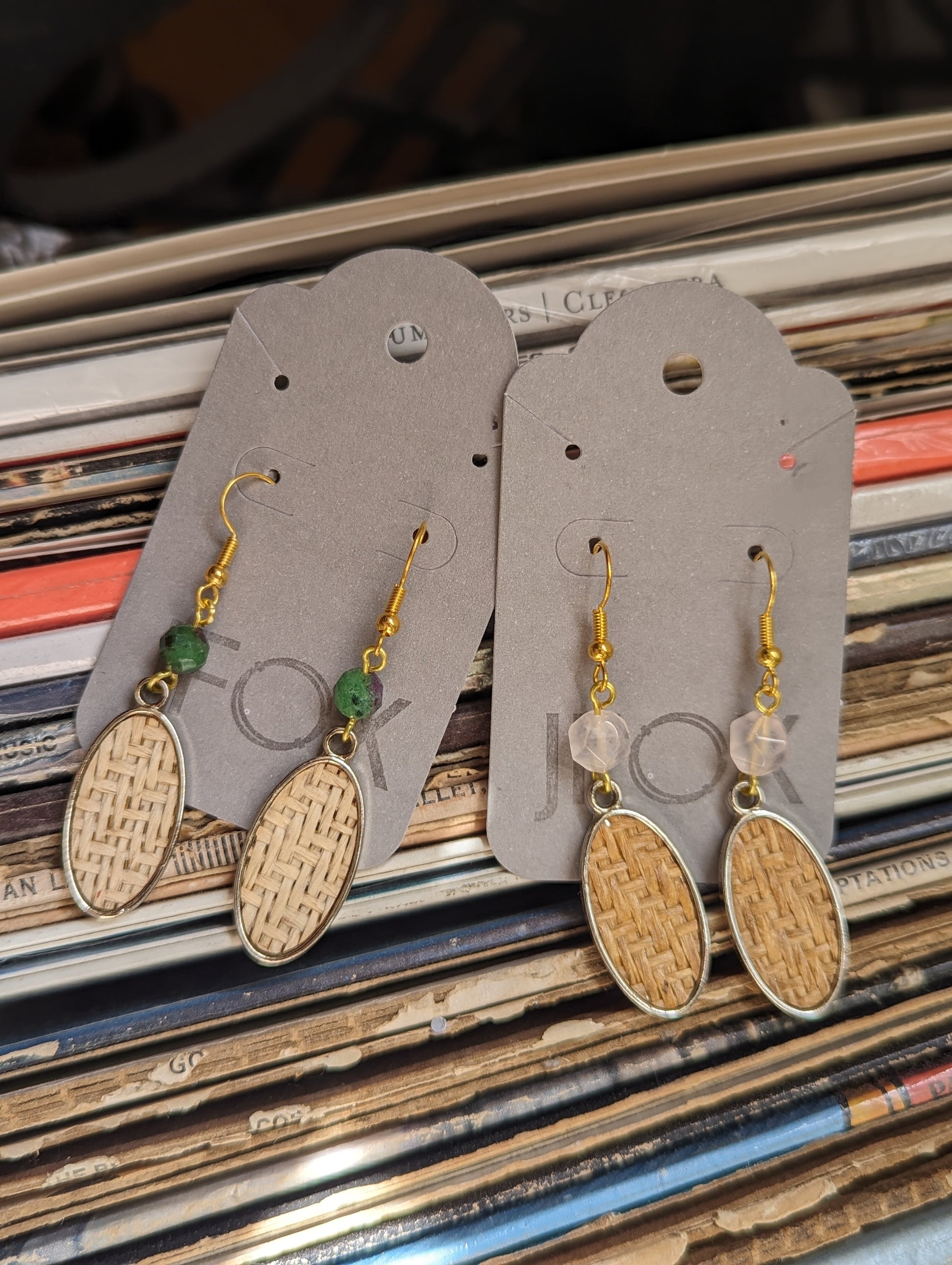 Wicker Earrings (Rose Quartz & Ruby Zoisite)